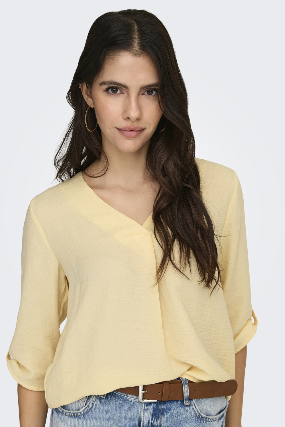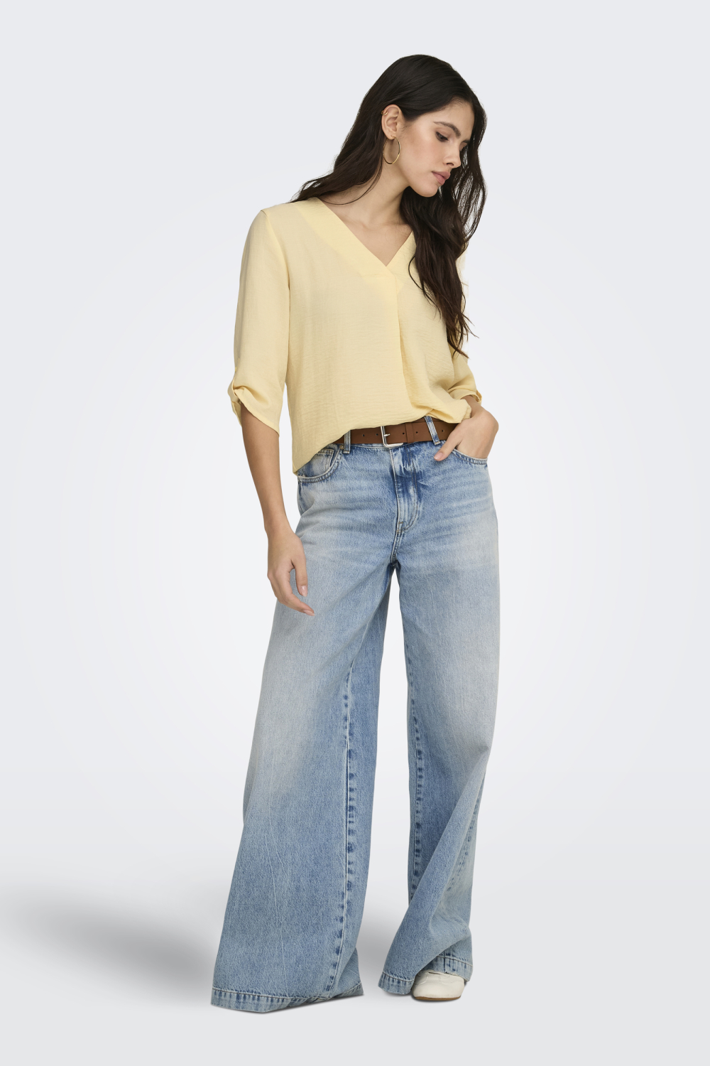 Het Jacqueline de Yong T-shirt in Pastel Yellow biedt een frisse en elegante vibe voor jouw wintergarderobe. Met een comfortabele regular fit en een stijlvolle V-hals, is dit T-shirt ideaal voor dagelijks gebruik. De 3/4 mouwen geven een speelse touch, terwijl de zachte stof van 51% gerecycled polyester en 49% polyester je een duurzaam en aangenaam draagcomfort bezorgt. De pastelgele kleur brengt licht in de donkere winterdagen, waardoor je dit T-shirt perfect kunt combineren met zowel lichte als donkere broeken. Bovenop zijn aantrekkelijke uitstraling, is dit T-shirt veelzijdig en makkelijk te stylen voor verschillende gelegenheden. Of je nu een casual dag thuis hebt of een informele bijeenkomst buiten de deur plant, dit Jacqueline de Yong T-shirt past perfect in elke setting. Draag het met een lichte jeans voor een relaxte look of combineer het met een nette rok voor een wat chiquer effect. Dit kledingstuk is een must voor iedereen die waarde hecht aan zowel stijl als duurzaamheid.
