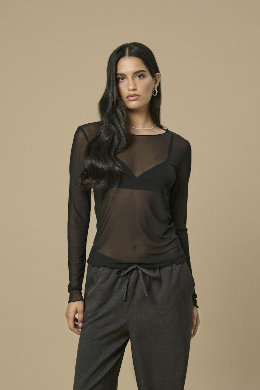 Dit stijlvolle zwarte T-shirt van Jacqueline de Yong is een veelzijdige keuze voor de moderne vrouw. Het T-shirt heeft een slanke pasvorm en is vervaardigd uit een combinatie van 90% polyester en 10% elastan. Dit zorgt voor een aangename stretch en een comfortabele fit, ideaal voor elke gelegenheid. De ronde hals en lange mouwen geven het shirt een elegante uitstraling, terwijl het doorschijnende meshmateriaal een gedurfde twist toevoegt. De zwarte kleur maakt dit T-shirt eenvoudig te combineren met zowel casual als meer formele outfits. Perfect voor een avondje uit, maar ook geschikt voor een trendy look op kantoor. Draag het met een nette broek voor een chic effect, of combineer het met een jeans voor een meer ontspannen stijl. Dankzij het luchtige en rekbare materiaal blijf je je de hele dag comfortabel voelen, of je nu op stap gaat of een drukke werkdag hebt.