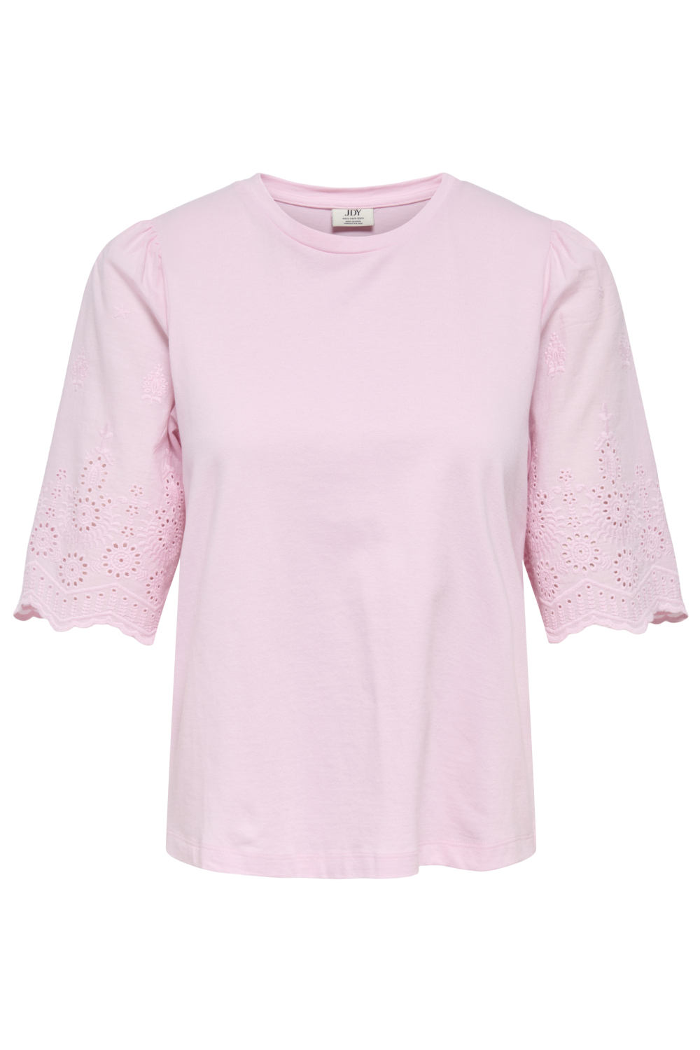 Dit casual T-shirt van Jacqueline de Yong is een veelzijdige toevoeging aan je voorjaarsgarderobe. Gemaakt van 100% biologisch katoen, biedt dit T-shirt een comfortabele en duurzame keuze. Met zijn elegante ajour patroon en de ronde halslijn straalt de "Pink Lady" kleur een zachte, vrouwelijke charme uit. De korte mouwen hebben een subtiele wijdte met een decoratieve rand, wat een verfijnde touch geeft aan de algehele uitstraling. Dit T-shirt is perfect voor een relaxte dag in het park of een informele bijeenkomst met vrienden. De regular fit en normale lengte zorgen ervoor dat het flatterend is voor verschillende lichaamstypen, terwijl het materiaal licht en ademend aanvoelt. Combineer het met je favoriete jeans of een casual rok voor een moeiteloze, stijlvolle look. Of je nu een rustige dag thuis hebt of een weekendje weg plant, dit T-shirt past perfect bij elke gelegenheid.