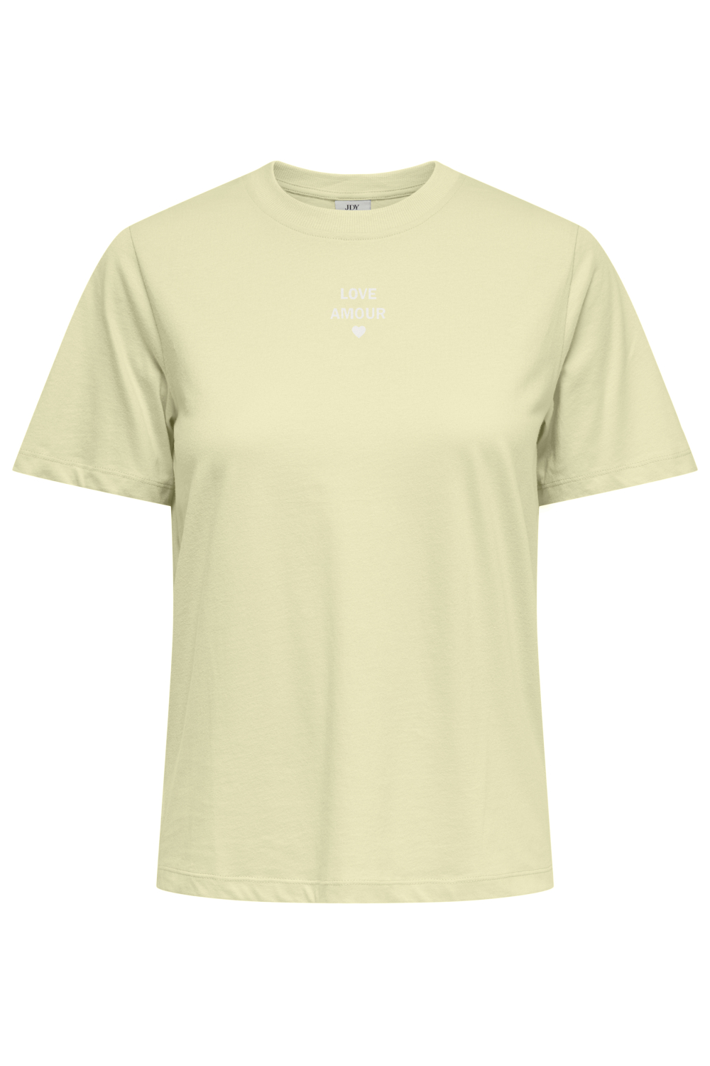 Dit casual T-shirt van Jacqueline de Yong is een frisse toevoeging aan jouw lente-garderobe. Het T-shirt heeft een zachte, lichtgele kleur met een subtiel tekstpatroon "LOVE AMOUR" op de borst. De ronde hals en korte mouwen maken het ontwerp eenvoudig en comfortabel, perfect voor dagelijks gebruik. Gemaakt van 100% katoen, biedt het een ademend en licht gevoel, ideaal voor de warmere maanden. De regular fit van dit dames T-shirt laat het op natuurlijke wijze aansluiten bij jouw lichaamsvorm, zonder in te boeten op bewegingsvrijheid. Met zijn normale lengte en stijlvolle patroon, kun je het eenvoudig combineren met een jeans of rok voor een relaxte uitstraling. Of je nu een dagje in het park doorbrengt of op een informele bijeenkomst bent, dit T-shirt is een veelzijdige keuze die je comfort en stijl garandeert.