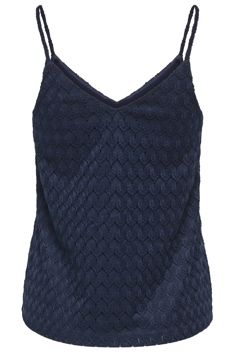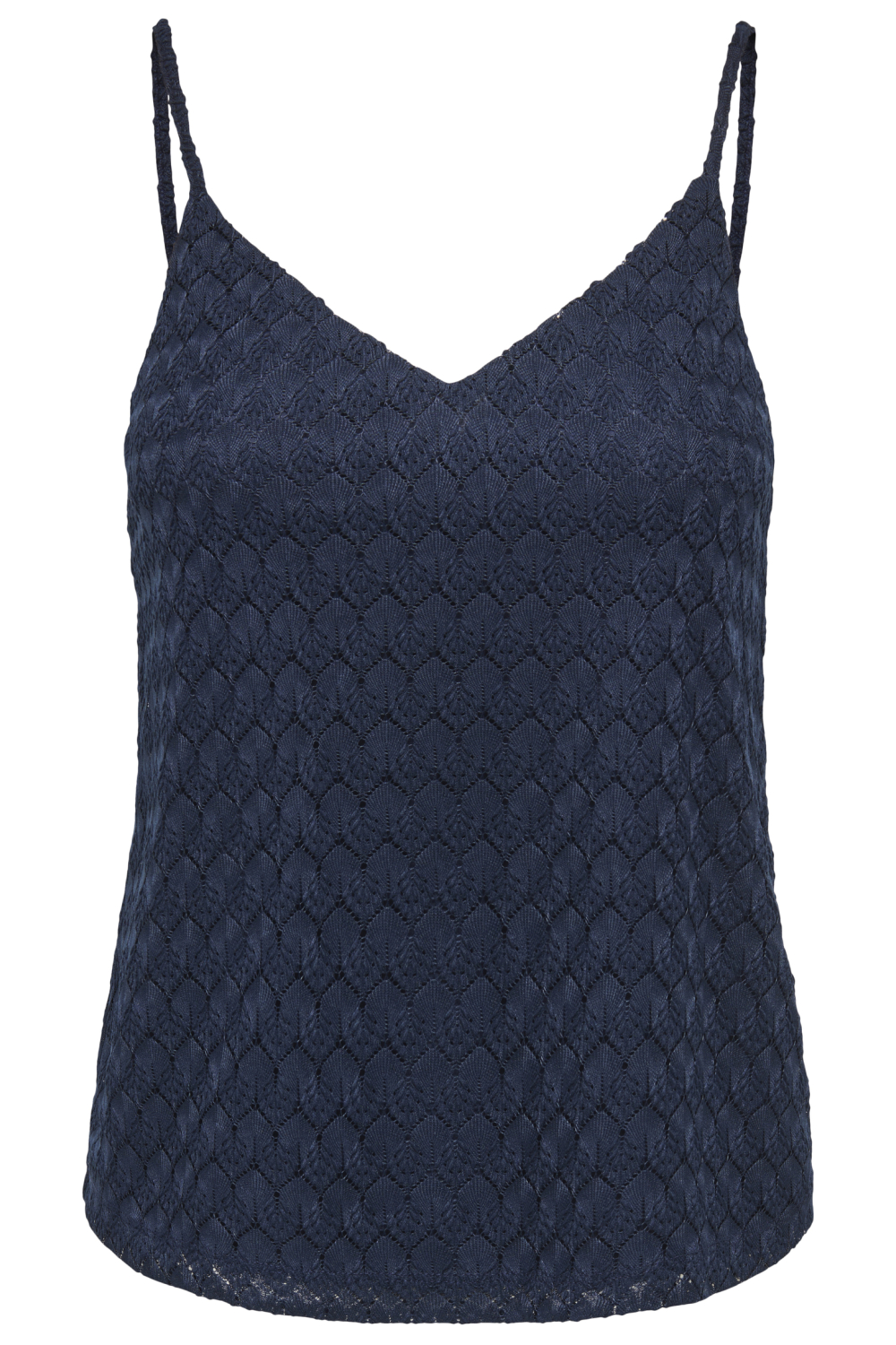 Deze elegante top van Jacqueline de Yong in de kleur Black Iris voegt een verfijnde touch toe aan je garderobe. De top is gemaakt van een duurzame mix van 50% gerecycled polyester en 50% polyester, waardoor hij niet alleen stijlvol, maar ook milieubewust is. Het romantische kantpatroon geeft de top een charmante uitstraling, terwijl de V-hals en de delicate spaghettibandjes zorgen voor een vrouwelijke touch. De regular fit en normale lengte maken deze top geschikt voor verschillende lichaamsvormen. Dankzij het casual design is deze top veelzijdig te combineren. Draag het bijvoorbeeld met een lichte jeans voor een frisse, zomerse look of combineer het met een elegante rok voor een avondje uit. Ideaal voor warme dagen dankzij de luchtige voering, blijft deze top comfortabel, zelfs tijdens drukke momenten. Of je nu een dagje op het terras doorbrengt of naar een informele bijeenkomst gaat, deze top van Jacqueline de Yong is een stijlvolle keuze die je moeiteloos kunt dragen.