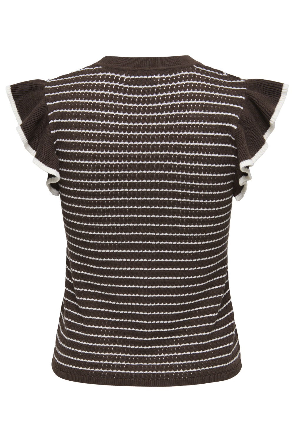 Deze stijlvolle Jacqueline de Yong top is een veelzijdige aanvulling op jouw zomergarderobe. Met een elegante ajourpatroon en een subtiele bruine tint gemengd met witte strepen, straal je moeiteloos verfijning uit. De top is mouwloos en heeft charmante ruches op de schouders, waardoor het een speelse maar toch chique uitstraling krijgt. Gemaakt van 100% katoen, biedt het een ademend comfort, perfect voor warme zomerdagen. De ronde halslijn en slim fit pasvorm zorgen voor een eigentijdse look die zowel casual als stijlvol is. Combineer deze top met een lichte broek of een zomerse rok voor een verfijnde look overdag. Wil je een meer formele uitstraling? Draag het dan met een blazer voor een zakelijke setting. Deze Jacqueline de Yong top is geschikt voor zowel informele bijeenkomsten als zakelijke meetings, waardoor het de perfecte keuze is voor elke gelegenheid.