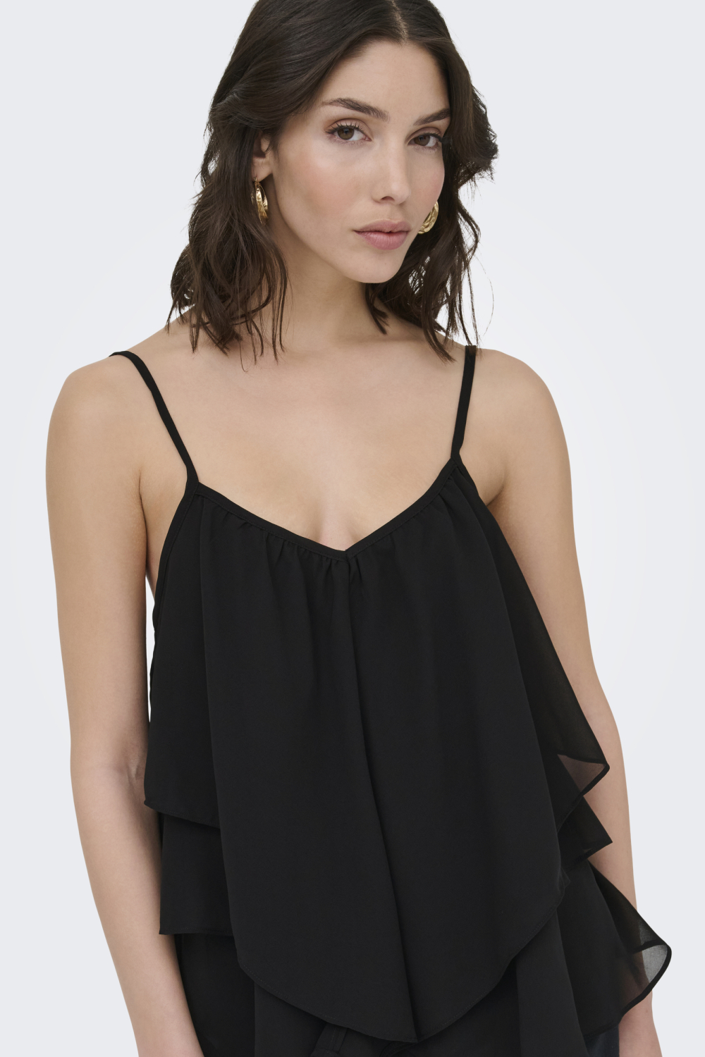 Deze elegante top van Jacqueline de Yong is een must-have voor je voorjaarsgarderobe. Met zijn stijlvolle zwarte kleur en ruches details, straalt deze top een moeiteloze elegantie uit. Het ontwerp met spaghettibandjes en V-hals zorgt voor een luchtige en flatterende uitstraling, perfect voor warme lentedagen. Gemaakt van 100% polyester, biedt het je comfort en duurzaamheid in één stijlvol pakket. Of je nu een casual dag wilt doorbrengen of een avond uit plant, deze Jacqueline de Yong top past in elke situatie. Combineer hem met een jeans voor een relaxte look of kies voor een rok voor een meer feestelijke gelegenheid. De regular fit en normale lengte zorgen ervoor dat de top je figuur mooi complimenteert en veelzijdig inzetbaar is. Laat deze veelzijdige top met ruches een centrale rol spelen in je favoriete outfits.