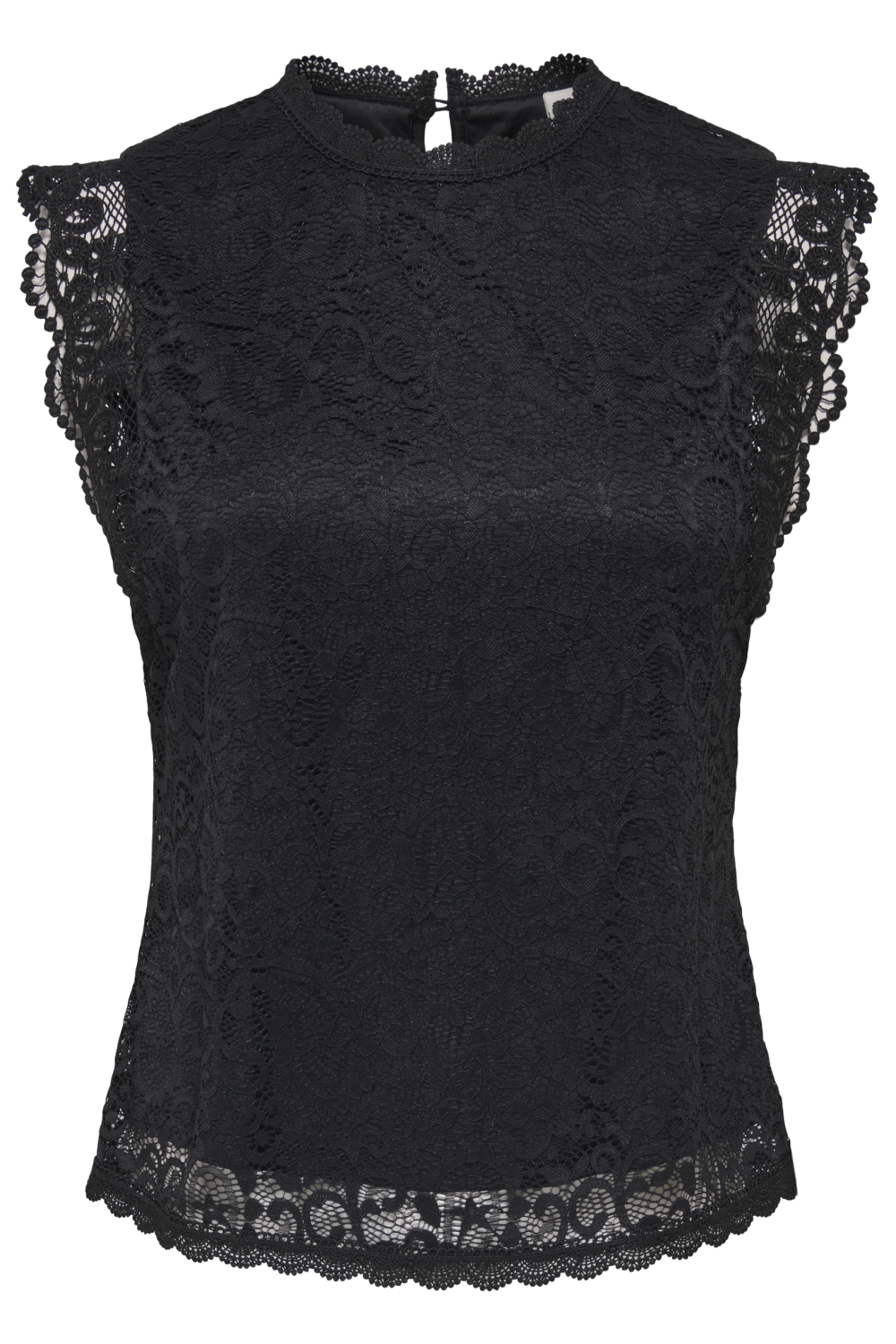 Deze elegante top van Jacqueline de Yong is een verfijnde toevoeging aan je zomergarderobe. De top, uitgevoerd in de kleur zwart, heeft een sophisticated uitstraling dankzij het prachtige kanten patroon dat de stof siert. De slim fit pasvorm zorgt ervoor dat de top perfect aansluit, waardoor je figuur mooi wordt geaccentueerd. Met een high neck en knoopsluiting aan de achterkant, biedt deze mouwloze top een modern en stijlvolle look die eenvoudig te combineren is. Gemaakt van 95% polyamide en 5% elastan, biedt deze top zowel comfort als stijl. De voering van polyester zorgt voor extra draagcomfort, wat het geschikt maakt voor zowel casual als meer formele gelegenheden. Of je nu een dagje op kantoor doorbrengt of een diner hebt gepland, deze top is een veelzijdige keuze. Combineer het met een lichte pantalon voor een elegante look of met een jeans voor een meer ontspannen stijl. Dankzij de normale lengte valt de top mooi op je heupen, waardoor het een tijdloze en veelzijdige aanvulling is op je garderobe.