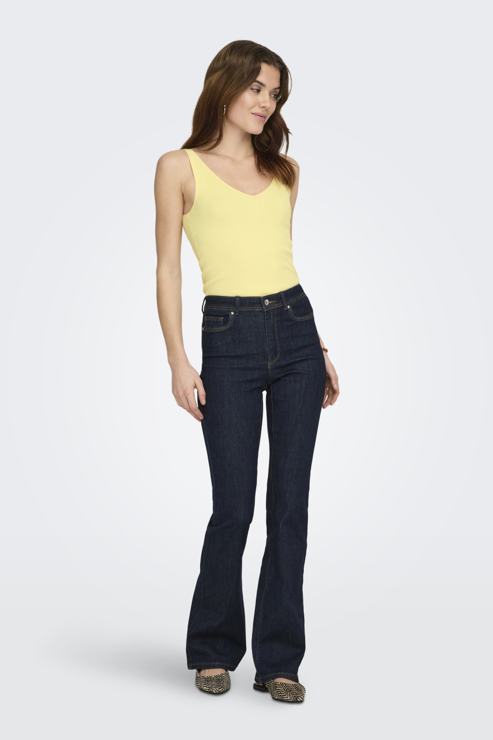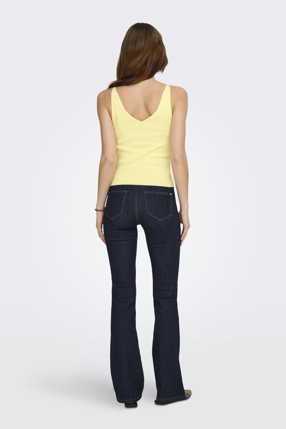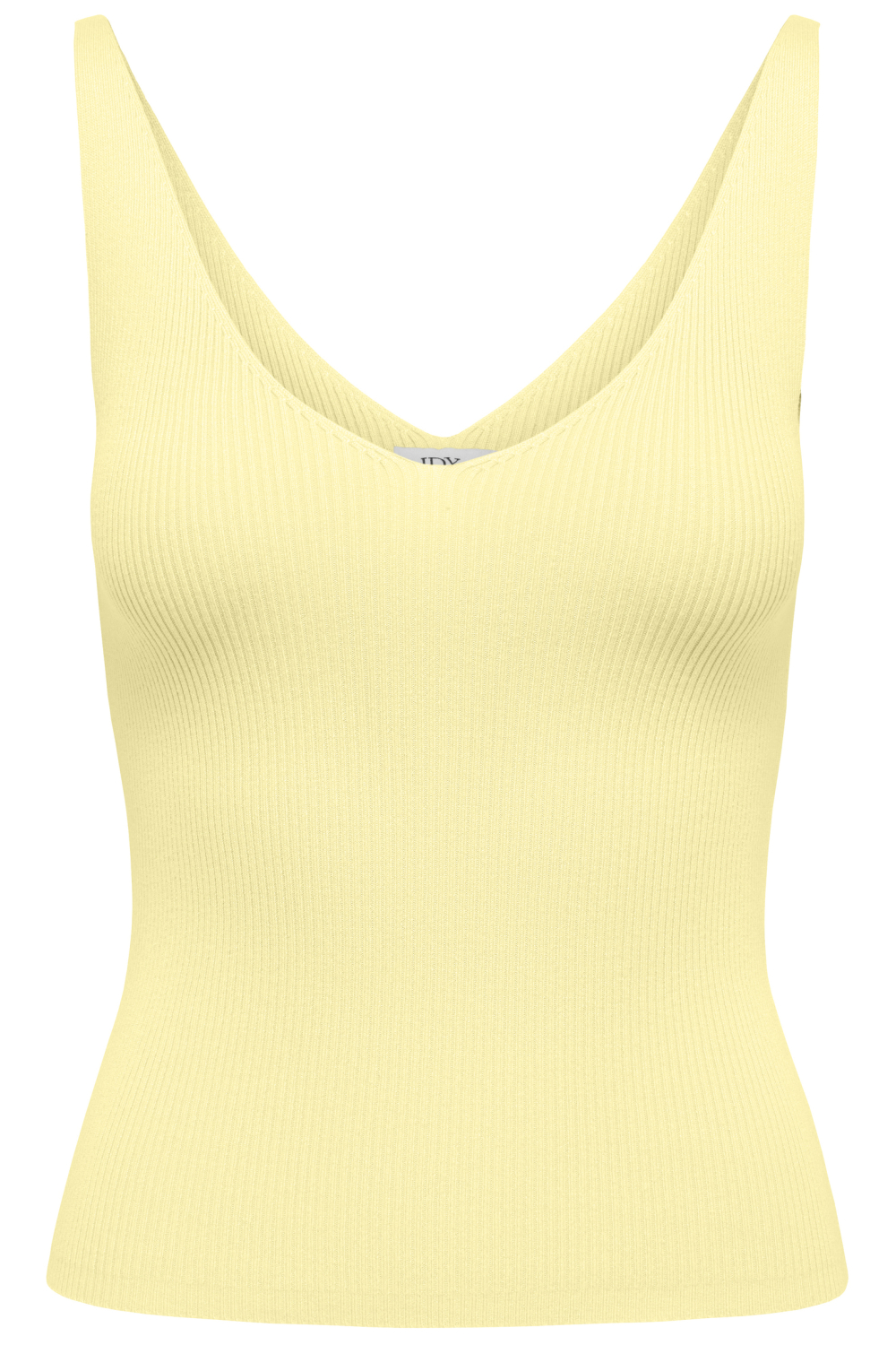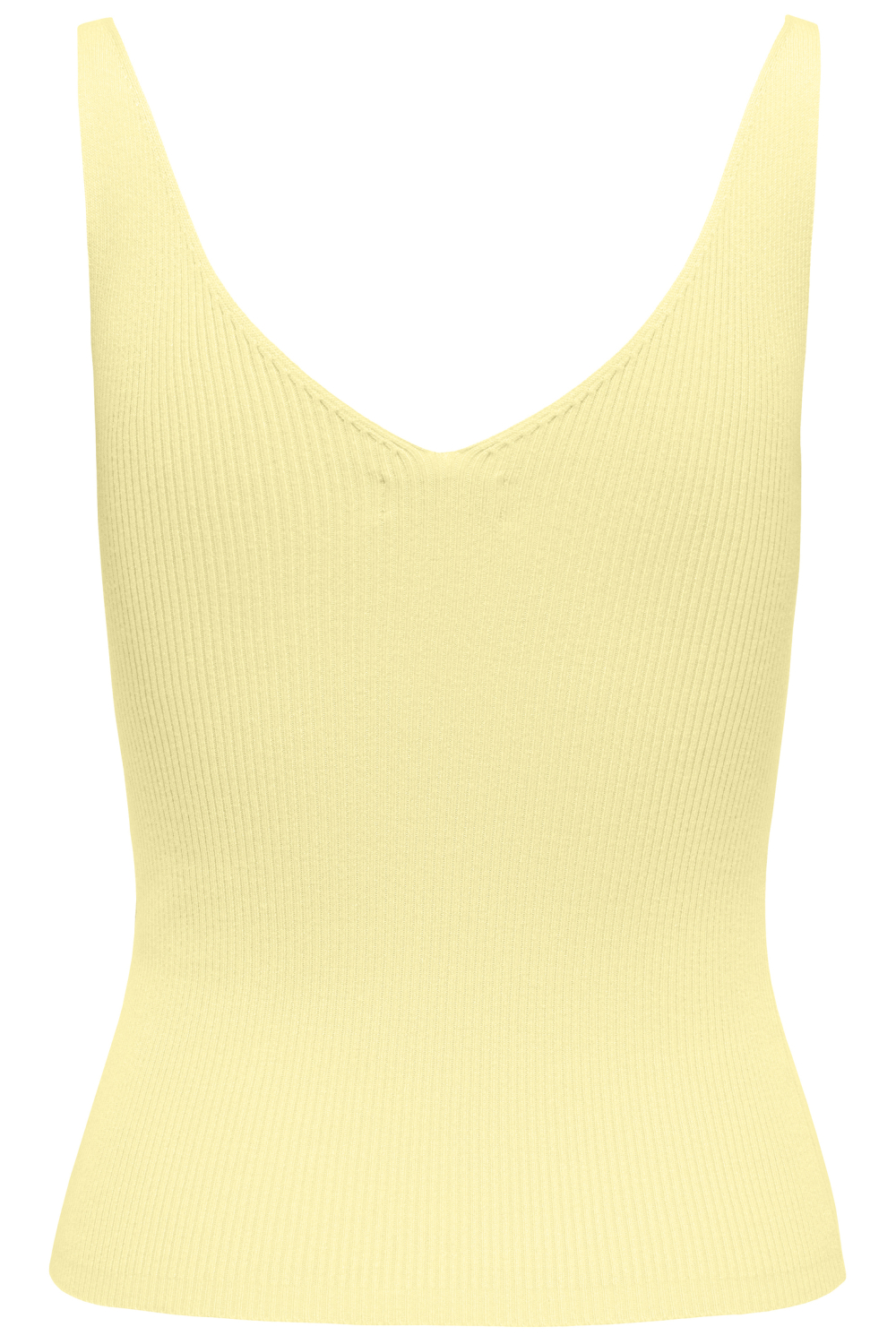 Deze elegante pastelgele top van Jacqueline de Yong brengt een frisse wind in je lentegarderobe. Met de ribstructuur biedt deze knitwear top een subtiele textuur die direct stijl toevoegt aan je outfit. De v-hals zorgt voor een flatterende pasvorm, perfect voor een casual dagje uit of een zonnige brunch met vrienden. De mouwloze snit in een regular fit accentueert je figuur en zorgt ervoor dat je je vrij en comfortabel voelt in elke situatie. Gemaakt van een zachte mix van 80% viscose en 20% nylon, voelt deze top aangenaam licht aan op je huid. De normale lengte maakt het makkelijk te combineren met zowel shorts als je favoriete jeans. De zachte pastelgele kleur is ideaal voor het lente seizoen en straalt een zachte, vrouwelijke charme uit. Of je nu op weg bent naar een relaxte picknick of een middag winkelen, deze top biedt jou een verfijnde, moeiteloos stijlvolle uitstraling.
