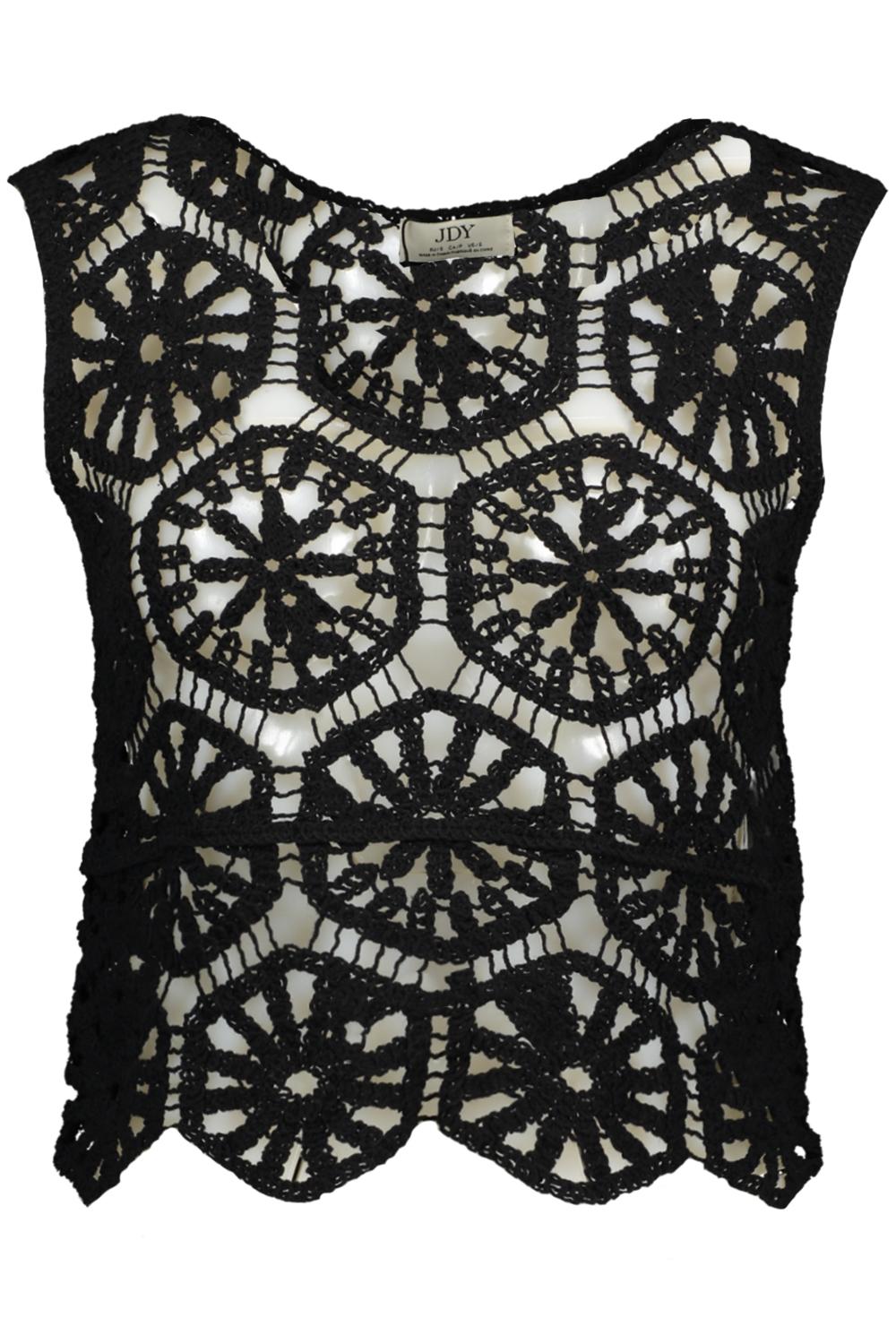 Deze stijlvolle Jacqueline de Yong top is een verfijnde toevoeging aan je zomerse garderobe. De top is vervaardigd uit zachte, 100% katoenen stof en heeft een slim fit pasvorm die jouw silhouet mooi benadrukt. Het opvallende kenmerk van deze top is het elegante opengewerkte kantpatroon in klassiek zwart, wat een vleugje verfijning en textuur aan je outfit toevoegt. De ronde hals en de mouwloze afwerking maken het een ideaal kledingstuk voor warme dagen, terwijl de korte lengte een veelzijdige styling mogelijk maakt. De Jacqueline de Yong top is perfect voor een breed scala aan gelegenheden. Draag het tijdens een casual dagje uit met vrienden, of style het met een mooie rok voor een avondje uit. De subtiele maar toch opvallende details maken het een veelzijdig stuk dat je makkelijk kunt combineren met diverse styles. Of je nu voor een elegante look gaat of juist voor een nonchalante uitstraling kiest, deze top is een betrouwbare keuze die je makkelijk kunt dragen in elke setting.