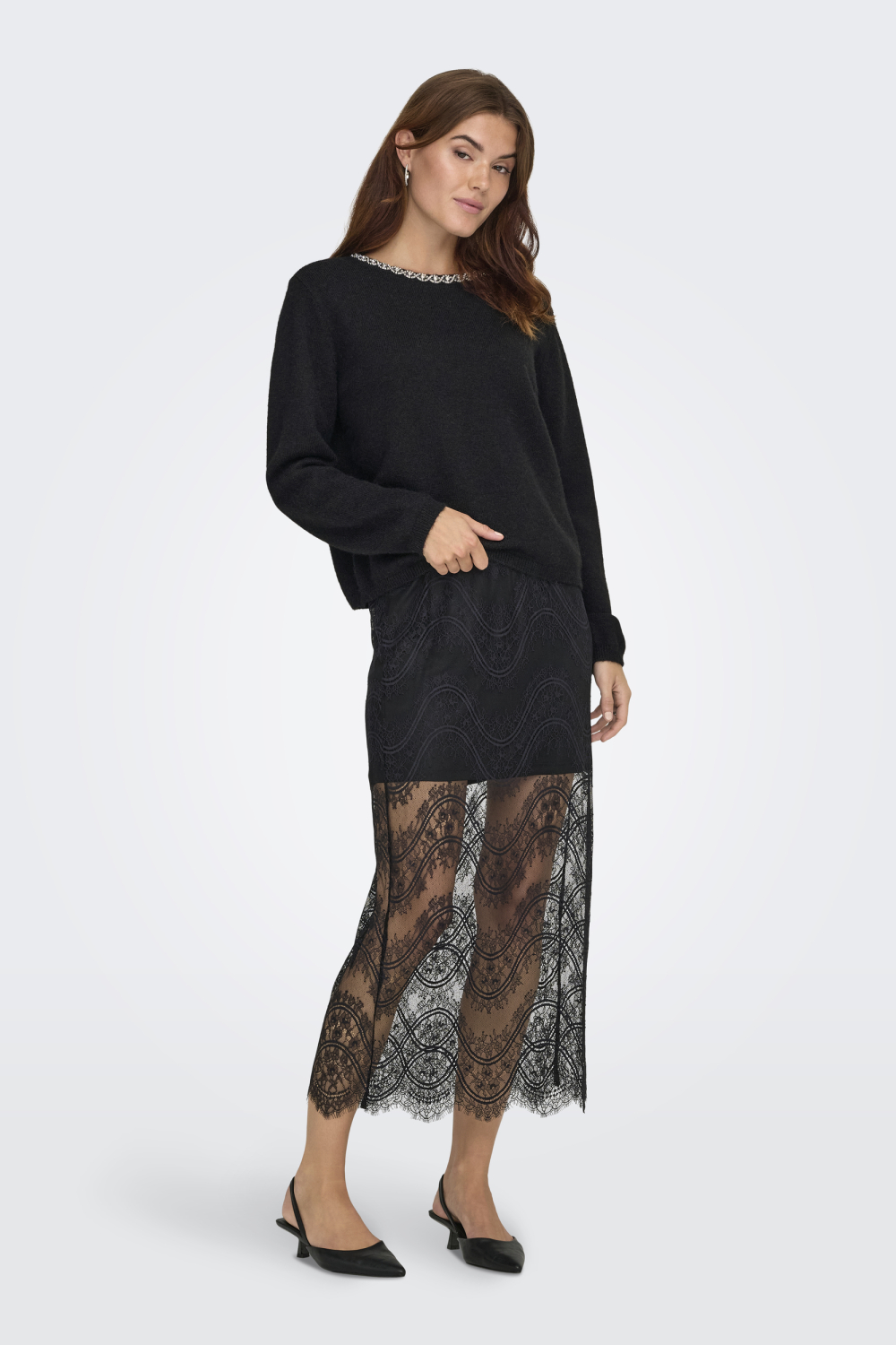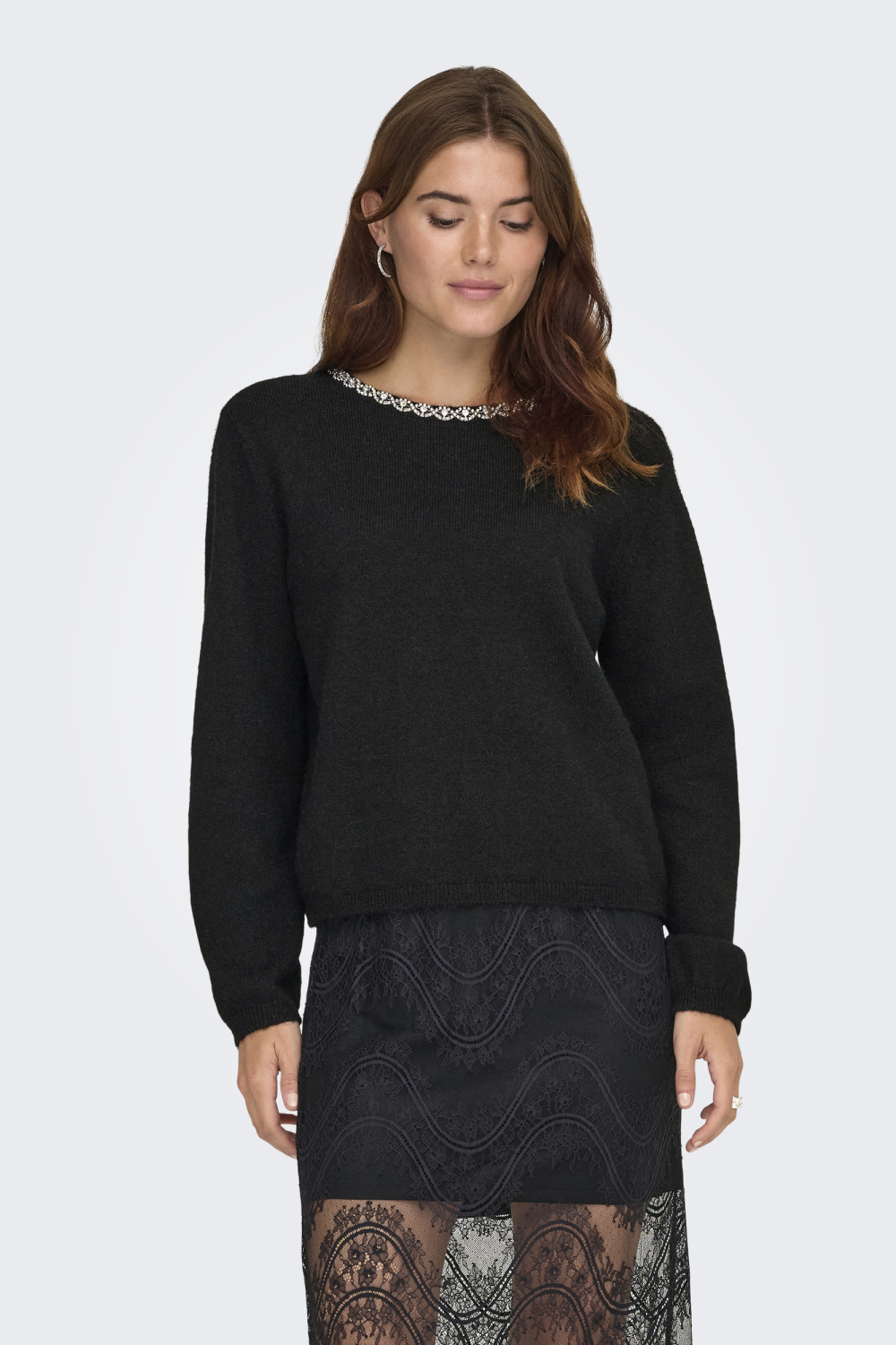 Deze prachtige trui van Jacqueline de Yong is een ideale keuze voor dames die zowel stijl als comfort waarderen. Met zijn regular fit biedt deze trui een comfortabele pasvorm die je gemakkelijk de hele dag draagt. De subtiele glitters geven een vleugje elegantie aan het algehele ontwerp, terwijl de ronde halslijn met decoratieve details een unieke uitstraling biedt. Deze Jacqueline de Yong trui is ontworpen met een fijne breistructuur die perfect bij het herfstseizoen past. Dankzij de veelzijdige zwarte kleur is het eenvoudig deze trui te combineren met zowel casual als meer formele outfits. Draag hem bijvoorbeeld op een nette rok voor een avondje uit of combineer met je favoriete jeans voor een meer ontspannen look. De lange mouwen zorgen ervoor dat je warm blijft op koelere dagen, zonder in te leveren op stijl. Deze trui is niet alleen een stijlvolle, maar ook een praktische aanvulling op je garderobe.