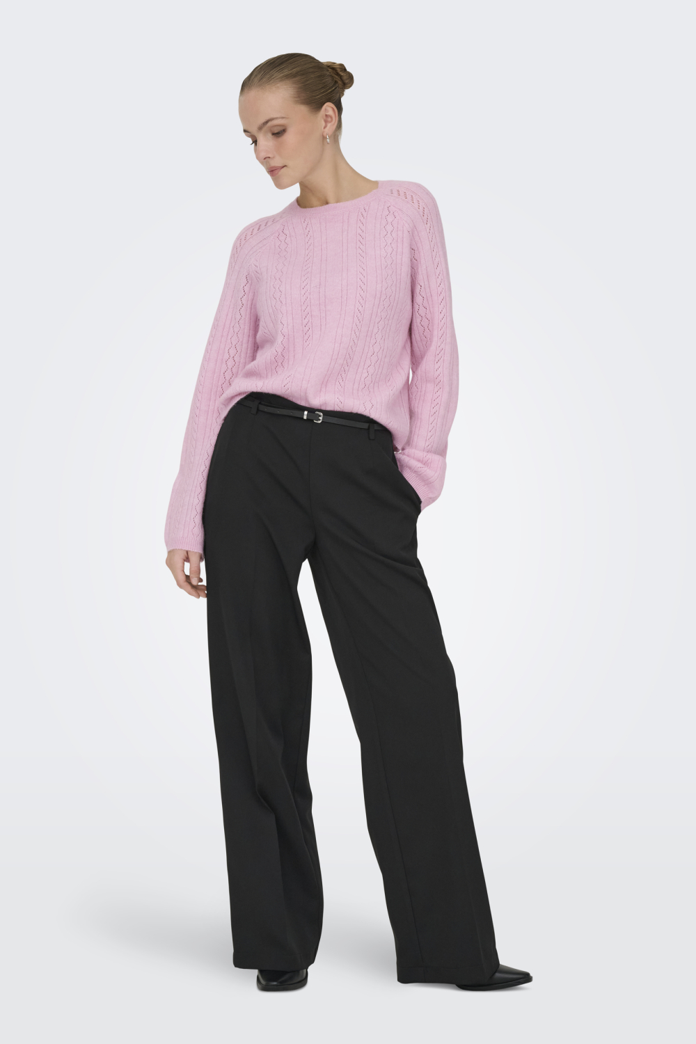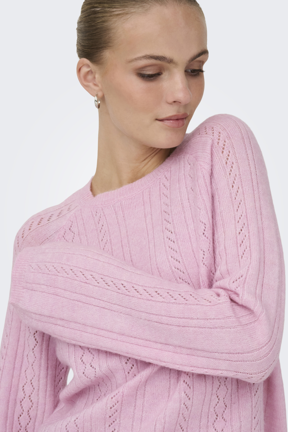 Deze zachte roze trui van Jacqueline de Yong is een fijne toevoeging aan je wintergarderobe. Voorzien van een regular fit, biedt hij je zowel comfort als een tijdloze uitstraling. De trui is vervaardigd uit een mix van polyester, acryl, wol en elastaan, wat zorgt voor een comfortabele en duurzame draagervaring. Het subtiele ajourpatroon geeft een elegante touch, terwijl de ronde hals een klassiek geheel vormt. Ideaal voor dames die houden van stijl en comfort tijdens de koude maanden. Deze trui is perfect voor diverse gelegenheden. Combineer hem met een nette pantalon voor een dag op kantoor, of draag hem met je favoriete jeans voor een casual weekendlook. De normale lengte en lange mouwen maken hem veelzijdig en geschikt voor elke gelegenheid. Of je nu een dagje eropuit gaat of thuiskomt na een lange werkdag, deze Jacqueline de Yong trui is een stijlvolle en functionele keuze voor elke situatie.