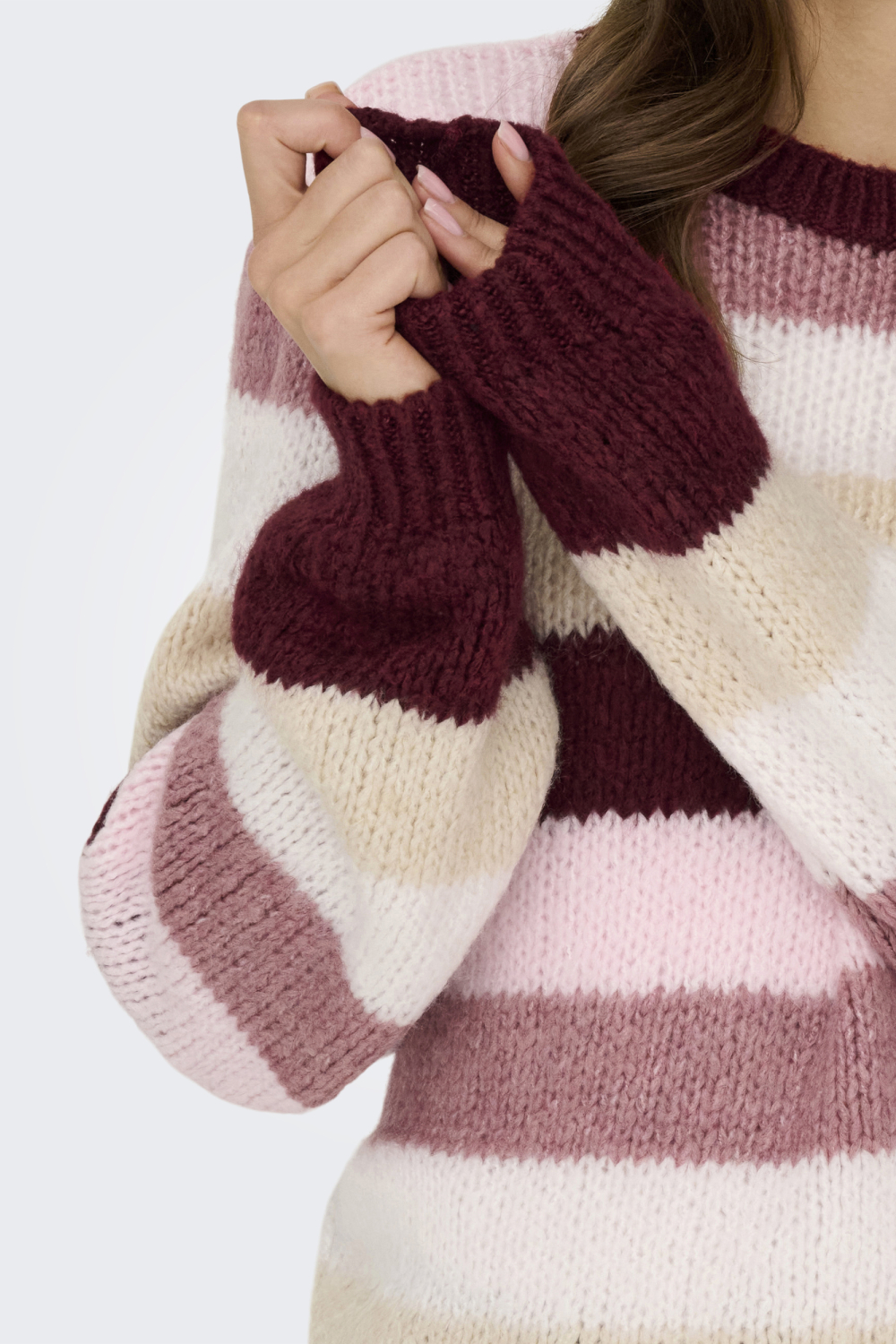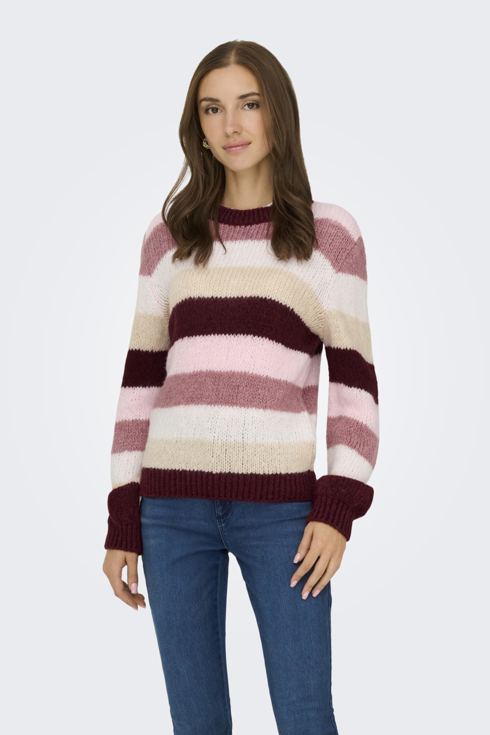 Deze gebreide trui van Jacqueline de Yong is een stijlvolle keuze voor het winterseizoen. Met zijn opvallende streeppatroon in warme tinten van roze, bordeaux en beige, voegt deze trui kleur toe aan je wintergarderobe. De regular fit zorgt voor een comfortabele pasvorm, terwijl de lange mouwen extra warmte bieden. Gemaakt van een mix van 80% acryl en 20% polyester, voelt de stof zacht aan op de huid. De ronde hals geeft de trui een klassieke uitstraling die gemakkelijk te combineren is met zowel casual als meer geklede outfits. Of je nu naar een informele bijeenkomst gaat of een wandeling maakt in het park, deze trui is een veelzijdige aanvulling op je kledingkast. De normale lengte maakt hem ideaal om te dragen op een jeans of een rok. De Jacqueline de Yong trui past perfect bij een relaxte sfeer, terwijl hij je toch een modieuze look geeft. Combineer hem met laarzen en een lange mantel voor een complete winteroutfit.