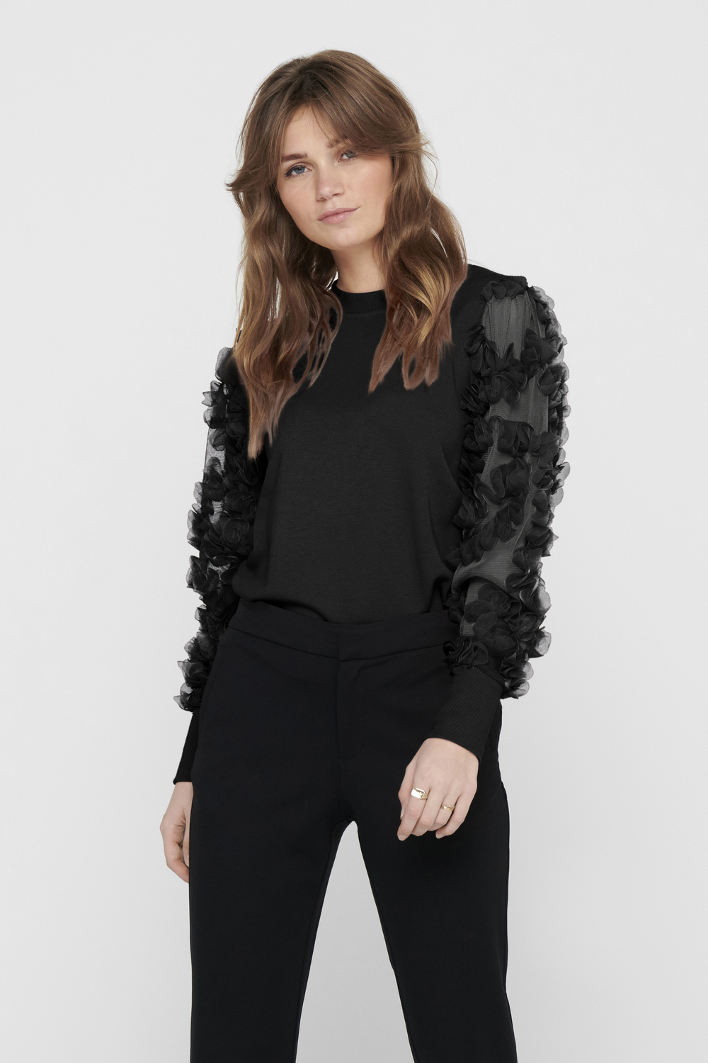 Deze elegante truien van Jacqueline de Yong zijn een bijzondere toevoeging aan je herfstgarderobe. Gemaakt van een fijne mix van 65% polyester en 35% katoen, biedt deze trui zowel comfort als stijl. De regular fit zorgt voor een ontspannen pasvorm terwijl de lange mouwen je warm houden in het koele seizoen. Wat deze trui echt uniek maakt, zijn de opvallende mouwen. Transparante details en geborduurde accenten geven je outfit een verfijnde uitstraling. De ronde halslijn voegt een klassieke touch toe, perfect voor zowel een casual dagje uit als een speciale gelegenheid. De stijlvolle zwarte kleur maakt deze trui makkelijk te combineren met andere stukken uit je kledingkast. Of je nu kiest voor een chic rokje of een stoere jeans, je creëert moeiteloos een modieuze look. Deze trui is ideaal voor verschillende situaties—van een gezellige avond met vrienden tot een ontspannen wandeling in het park. Met zijn normale lengte blijft hij comfortabel de hele dag door. Maak je herfstoutfit compleet en geniet van de veelzijdigheid van deze prachtige Jacqueline de Yong trui.
