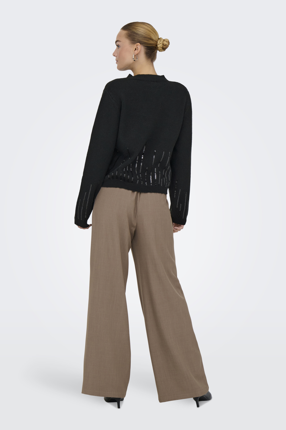 Deze stijlvolle zwarte trui van Jacqueline de Yong is een elegante toevoeging aan je wintergarderobe. Ontworpen voor dames, biedt deze regular fit trui een perfecte balans tussen comfort en stijl. Gemaakt van 82% gerecycled polyester, 15% acryl en 3% elastan, voelt de stof zacht aan op de huid en zorgt het voor een duurzame keuze. De sprankelende paillettenpatronen op de mouwen en voorkant geven een subtiele glans, ideaal voor een avondje uit of een feestelijke gelegenheid. Met zijn lange mouwen en normale lengte is deze trui perfect voor koude dagen. De karakteristieke details maken het gemakkelijk om te combineren met zowel een nette broek als een casual jeans. Of je nu naar een gezellige bijeenkomst gaat of gewoon een dag ontspannend thuis doorbrengt, deze Jacqueline de Yong trui biedt een veelzijdige en stijlvolle optie. Het tijdloze ontwerp zorgt ervoor dat je het seizoen na seizoen kunt dragen, waardoor het een waardevolle aanvulling op je collectie is.