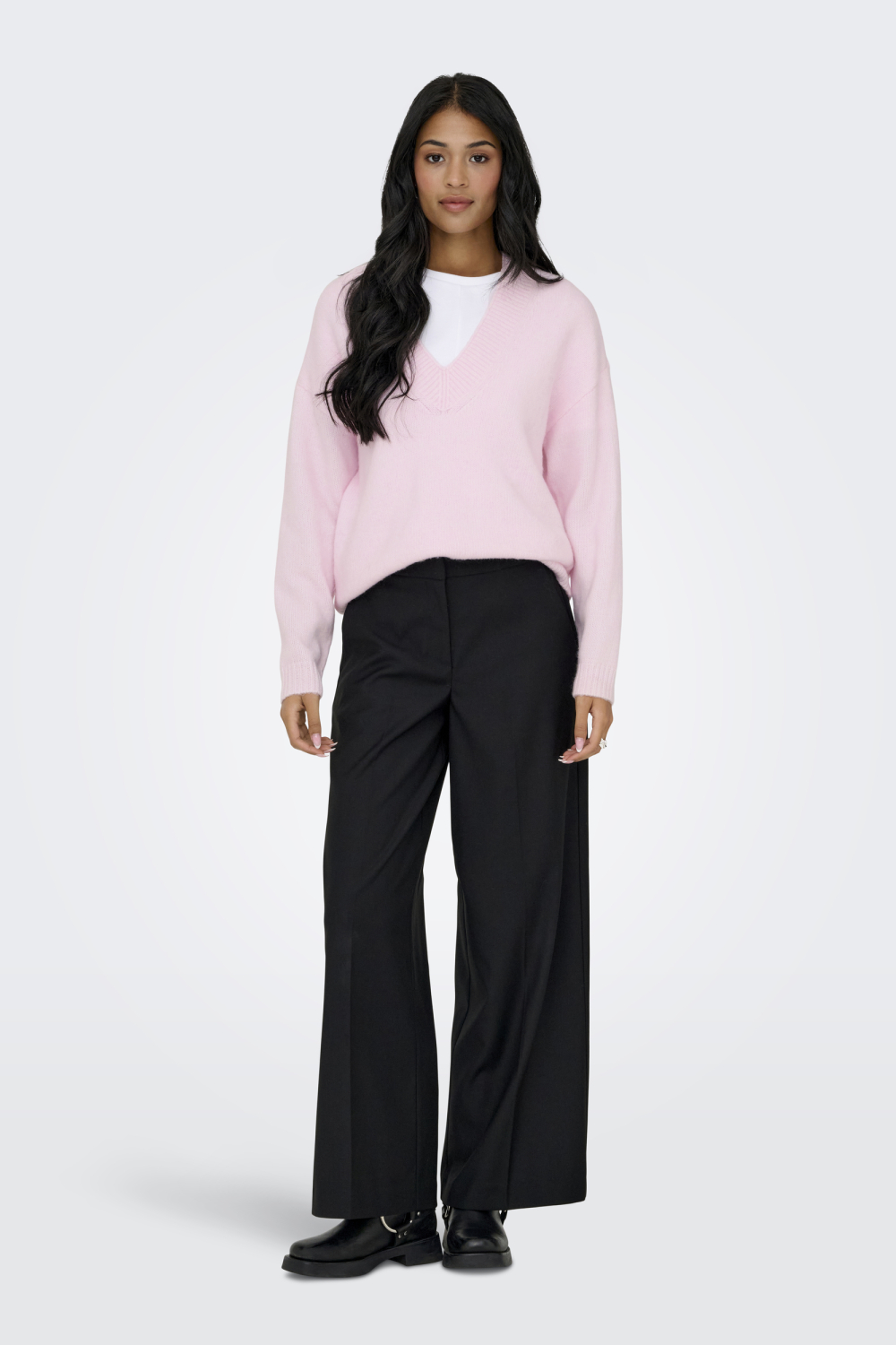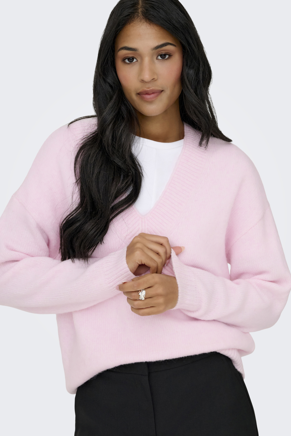 Deze charmevolle Jacqueline de Yong trui in de kleur Pink Lady/Melange is een heerlijk zachte aanvulling voor je wintergarderobe. Met zijn gemêleerde stof en regular fit pasvorm biedt de trui een comfortabele en relaxte uitstraling. De v-hals en lange mouwen zorgen voor een stijlvolle, casual look die ideaal is voor zowel thuis als op een dagje uit. Gemaakt van een duurzame mix van acryl, gerecycled polyester en een vleugje wol, houdt deze trui je warm tijdens de koude maanden. De Jacqueline de Yong trui is perfect voor informele gelegenheden en laat zich gemakkelijk combineren met verschillende outfits. Draag hem bijvoorbeeld boven een zwarte pantalon voor een eenvoudige maar elegante outfit, of maak je look compleet met een jeans en sneakers voor een moderne casual stijl. De normale lengte zorgt ervoor dat de trui eenvoudig te stylen is, ongeacht de gelegenheid. Voeg deze veelzijdige trui toe aan je dagelijkse collectie en geniet van comfort en stijl tijdens koude dagen.