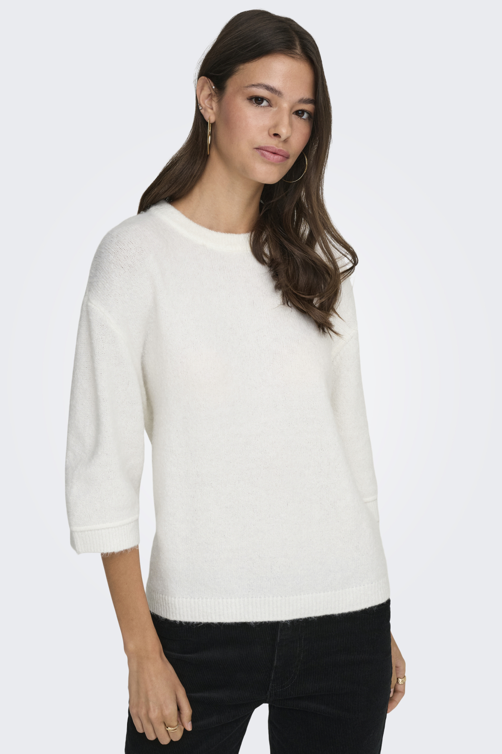 Deze elegante trui van Jacqueline de Yong in de kleur Cloud Dancer/Melange is een stijlvolle keuze voor elke wintergarderobe. Met een regular fit en korte mouwen biedt deze trui een comfortabele en moderne uitstraling. De ronde hals en de subtiele textuur van de stof voegen een verfijnde touch toe aan dit knitwear stuk. Gemaakt van een zachte mix van polyester, acryl, nylon en elastan, is deze trui perfect voor dagelijkse activiteiten, of je nu op kantoor bent of ontspannen thuis. De neutrale tint maakt het gemakkelijk om te combineren met zowel casual als meer geklede outfits. Draag het met een zwarte jeans voor een klassieke look, of combineer met een rok voor een meer vrouwelijke stijl. De normale lengte en eenvoudige lijnen zorgen ervoor dat deze trui zowel veelzijdig als tijdloos is, ideaal voor talloze gelegenheden gedurende het winterseizoen. Voeg gerust wat sieraden toe voor een persoonlijke touch; deze trui maakt je outfit compleet.