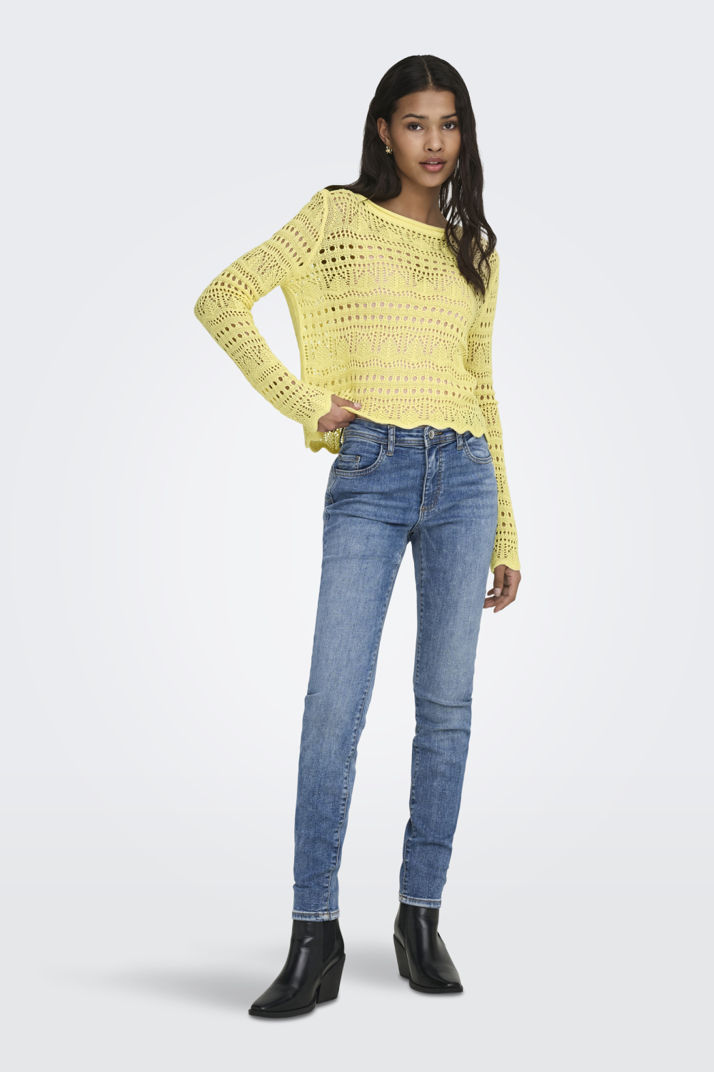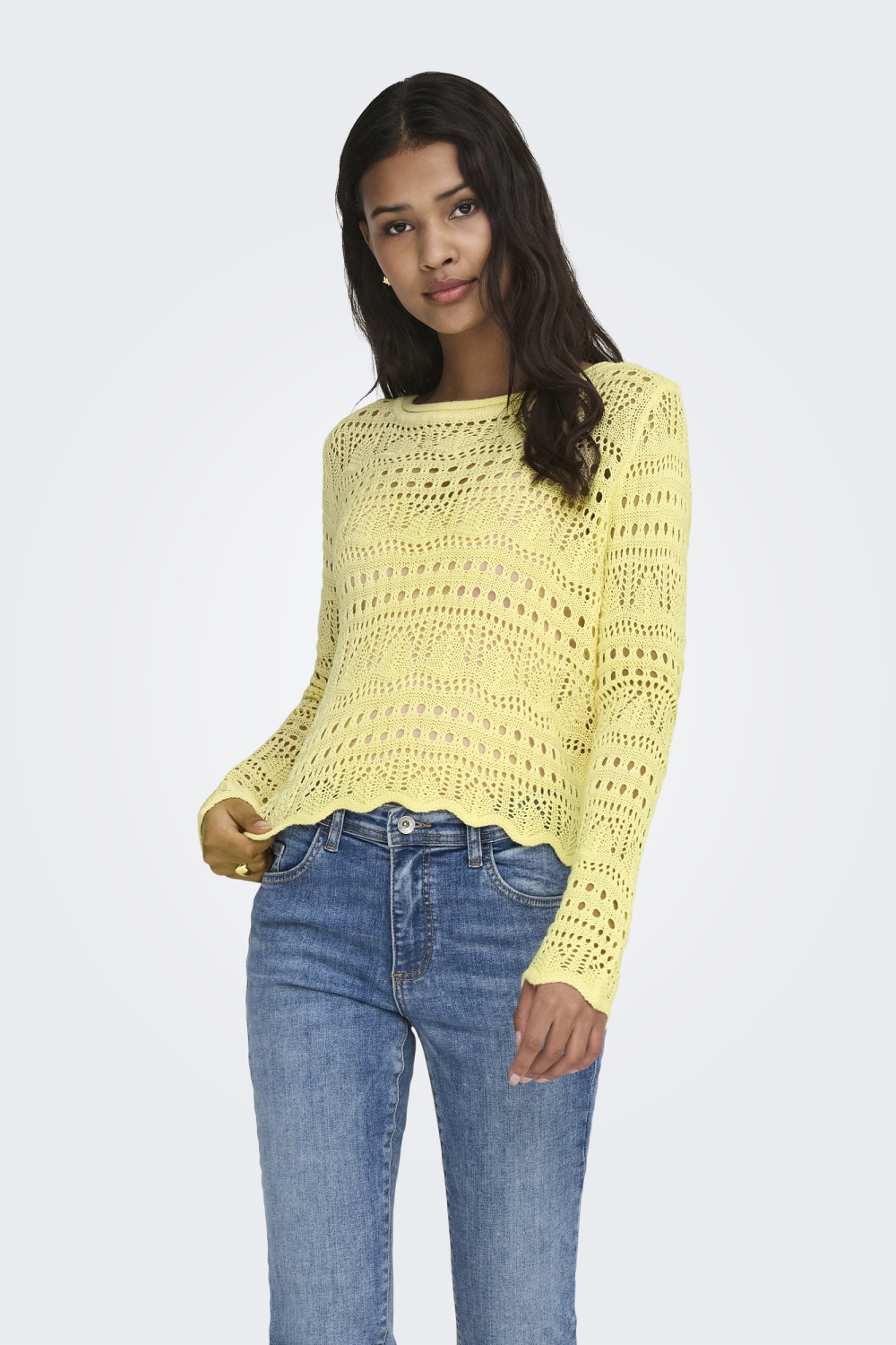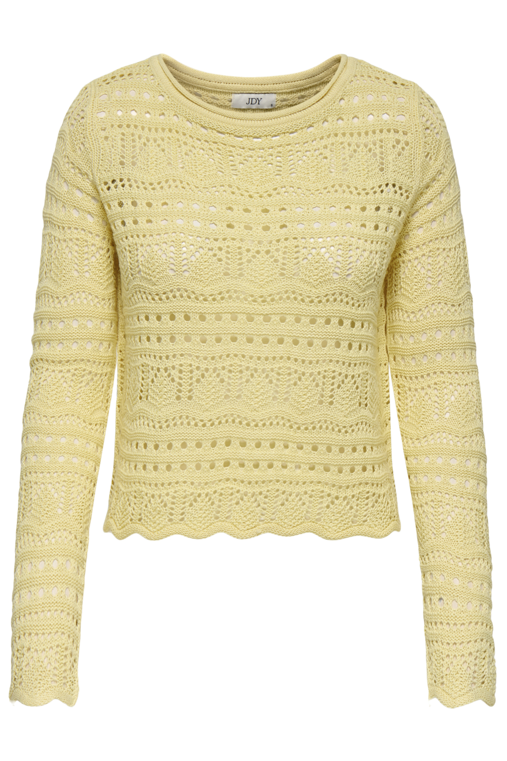 Deze Jacqueline de Yong trui is een perfecte aanvulling voor je voorjaarscollectie. Met een regular fit en een stijlvolle ronde hals, is deze trui een comfortabele keuze voor verschillende gelegenheden. Het opvallende kantpatroon geeft het kledingstuk een verfijnde uitstraling. De zachte, lichtgele kleur voegt een frisse touch toe aan je garderobe. Gemaakt van 100% acryl, biedt deze trui zowel zachtheid als duurzaamheid. De lange mouwen en normale lengte maken het een veelzijdig stuk dat zowel casual als chic gedragen kan worden. Combineer het met een lichte jeans voor een relaxte dag of kies voor een elegante rok voor een avondje uit. Perfect voor een koele lentedag, deze Jacqueline de Yong trui laat jou stralen met subtiele details en een tijdloos ontwerp. Of je nu naar een brunch gaat of een wandeling maakt in het park, deze trui biedt een moeiteloze stijl.