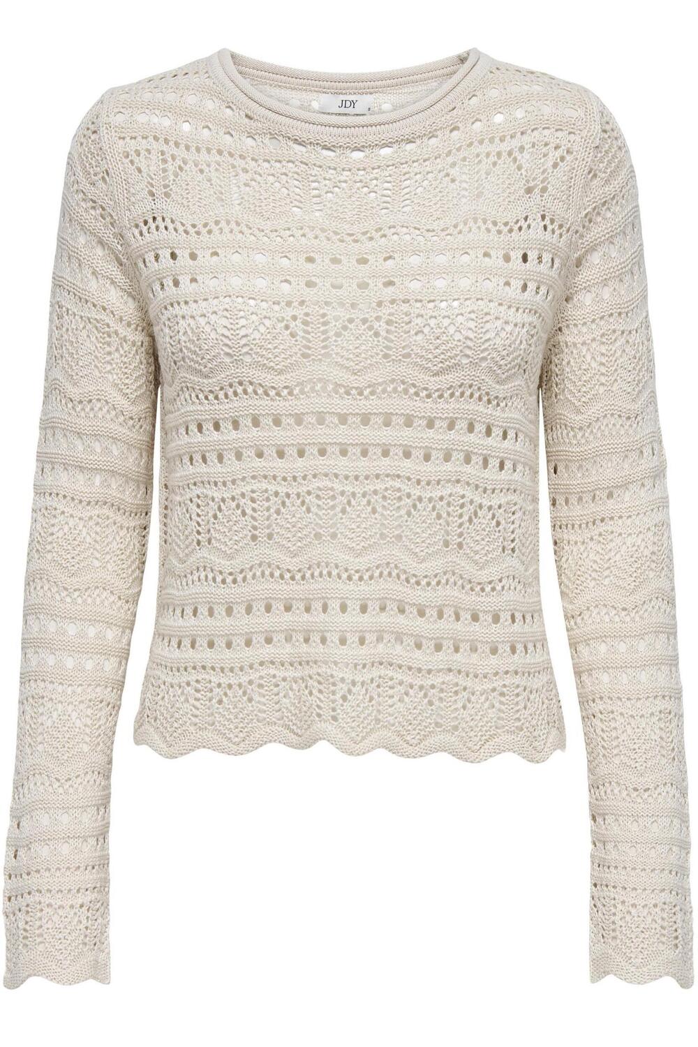 Met deze gebreide trui van Jacqueline de Yong voeg je een veelzijdig stuk toe aan je garderobe. De trui heeft een prachtig kantpatroon dat direct in het oog springt. De Tapioca kleur en ronde hals maken hem geschikt voor allerlei gelegenheden. Of je nu een dag op kantoor doorbrengt of een informele bijeenkomst hebt, deze trui biedt een stijlvolle uitstraling. Gemaakt van 100% acryl, is hij zowel comfortabel als duurzaam. Het reguliere model en de lange mouwen zorgen voor een comfortabele pasvorm die bijdraagt aan het dagelijkse draagcomfort. De trui is eenvoudig te combineren met zowel een jeans als een nette rok, afhankelijk van de sfeer die je wilt creëren. Dankzij de normale lengte valt hij netjes op de heupen, waardoor je hem moeiteloos kunt matchen met verschillende stijlen. Deze knitwear is een tijdloze keuze die je jaar na jaar kunt dragen.