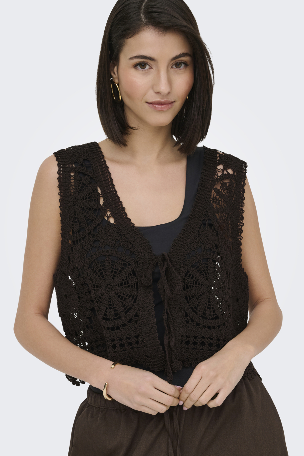 Dit stijlvolle, zwarte vest van Jacqueline de Yong is een perfecte toevoeging aan je zomeroutfit. Dankzij de luchtige, gehaakte structuur van 100% katoen, is dit vest ideaal voor de warmere dagen. De regular fit zorgt ervoor dat je het comfortabel kunt dragen, terwijl de V-hals en de vetersluiting aan de voorkant een speelse uitstraling geven. Met zijn mouwloze ontwerp en korte lengte voeg je op een subtiele manier een bohemian touch toe aan je look. De zorgvuldige details in het haakwerk maken dit vest een opvallend item voor elke casual gelegenheid. Combineer het met een luchtige blouse of top voor een ontspannen dagje uit, of draag het over een zomerse jurk voor een middag op het terras. Of je nu naar een festival gaat of een strandwandeling maakt, dit Jacqueline de Yong vest biedt een veelzijdige en tijdloze stijl waarmee je zowel overdag als 's avonds goed voor de dag komt.