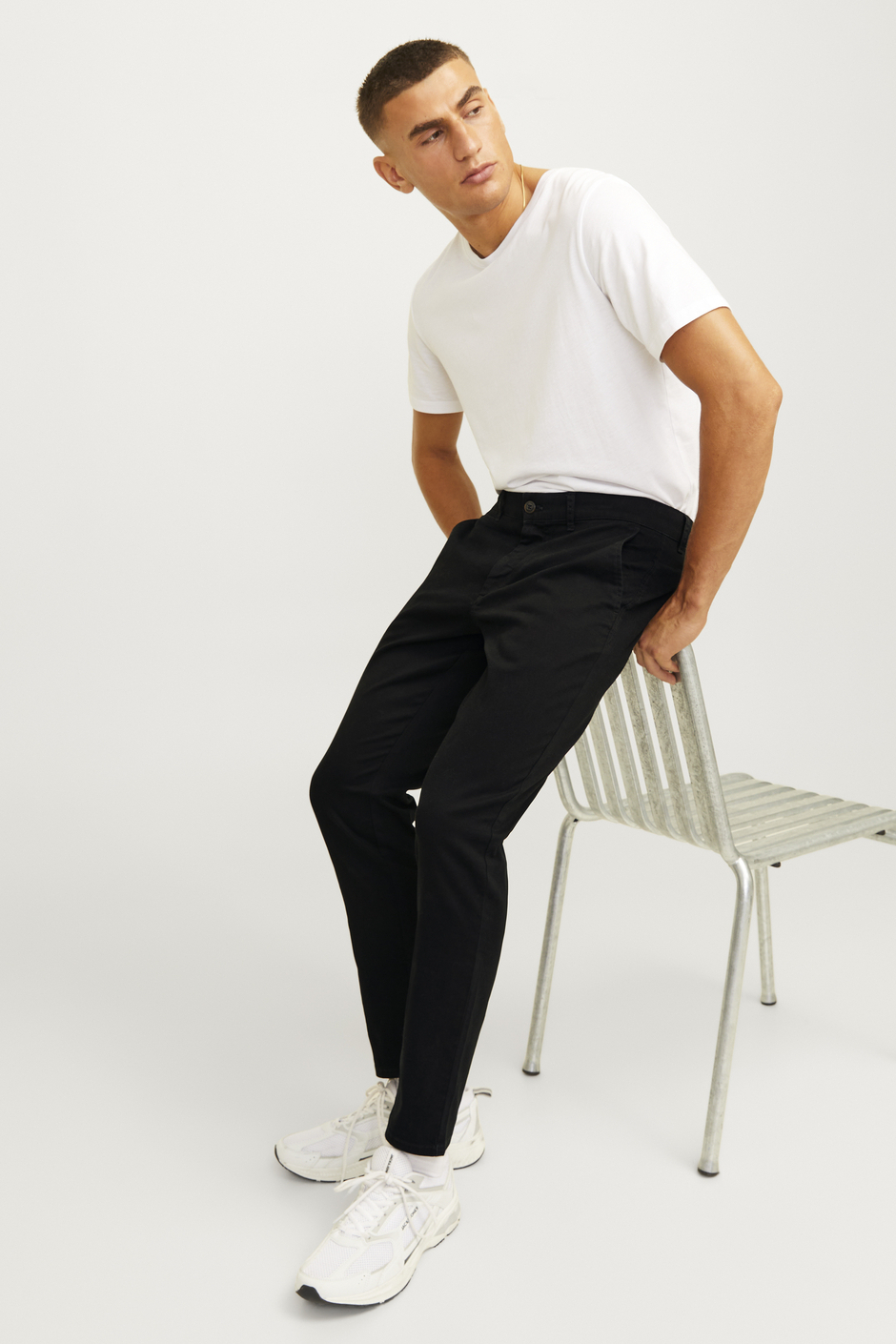 Deze zwarte slim fit broek van JJ Rebel is een tijdloze aanvulling voor je zomergarderobe. Met een samenstelling van 98% katoen en 2% elastan biedt het een comfortabele pasvorm die moeiteloos meebeweegt. De reguliere taille en de normale lengte zorgen voor een ontspannen en casual stijl. De broek is uitgevoerd met handige steekzakken en sluit met een knoop- en ritssluiting, wat zowel praktisch als stijlvol is. De broek leent zich uitstekend voor diverse gelegenheden, van een dag op kantoor tot een gezellige avond uit. Combineer het met een net overhemd voor een meer formele uitstraling, of kies voor een casual T-shirt om een ontspannen look te creëren. De subtiele uitstraling van deze broek maakt het een veelzijdig item in je collectie en past gemakkelijk bij verschillende stijlen en settings.