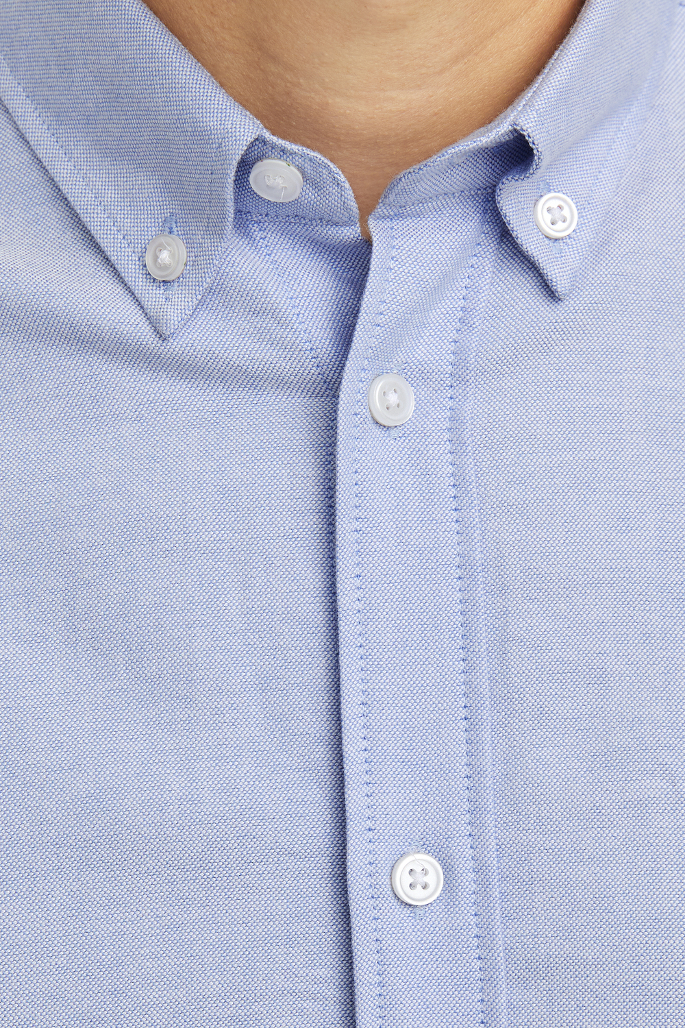Dit casual cashmere blauwe overhemd van JJ Rebel is een veelzijdige selectie voor je kledingkast. Met een comfortabele regular fit en een puntkraag biedt het overhemd een eigentijdse uitstraling. Gemaakt van 100% katoen, voelt de stof zacht aan en behoudt het een ademend karakter, ideaal voor zowel het voorjaar als najaar. De knoopsluiting en de subtiele structuur van de stof geven het een extra stijlvol detail. Perfect voor zowel dagelijks gebruik als voor een informelere gelegenheid, voeg je eenvoudig dit overhemd toe in diverse settings. Combineer het met een donkere jeans voor een casual dagje uit of stijl het met een pantalon voor een zakelijke lunch. De lange mouwen en normale lengte maken het een comfortabele keuze, ongeacht het seizoen. Dit JJ Rebel overhemd is een tijdloze aanvulling en makkelijk te combineren met je favoriete outfits.