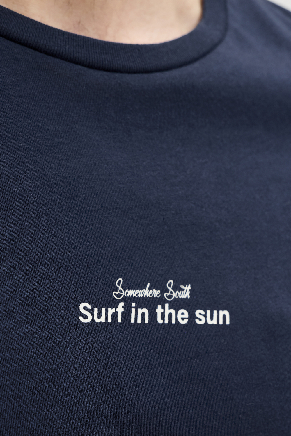 Dit navy blazer T-shirt van Jack & Jones biedt een casual en comfortabele stijl, ideaal voor de lente. Gemaakt van 100% katoen, zijn de stof en de regular fit pasvorm ontworpen voor maximaal draagcomfort. De ronde hals en korte mouwen geven het T-shirt een eenvoudige maar stijlvolle uitstraling. De subtiele tekstprint op de borst "Surf in the sun" voegt een vleugje speelsheid toe aan je dagelijkse outfit. Dit Jack & Jones T-shirt is perfect voor diverse casual settings. Of je nu een ontspannen dag aan het strand plant of een informele bijeenkomst met vrienden hebt, dit shirt is een goede match. Het opvallende printontwerp op de achterkant voegt een uniek element toe, waarin tropische illustraties harmoniëren met de tekst. Combineer het met een lichte broek of een comfortabele jeans voor een moeiteloze, stijlvolle look. Dit T-shirt is een veelzijdige aanvulling voor de modebewuste man.