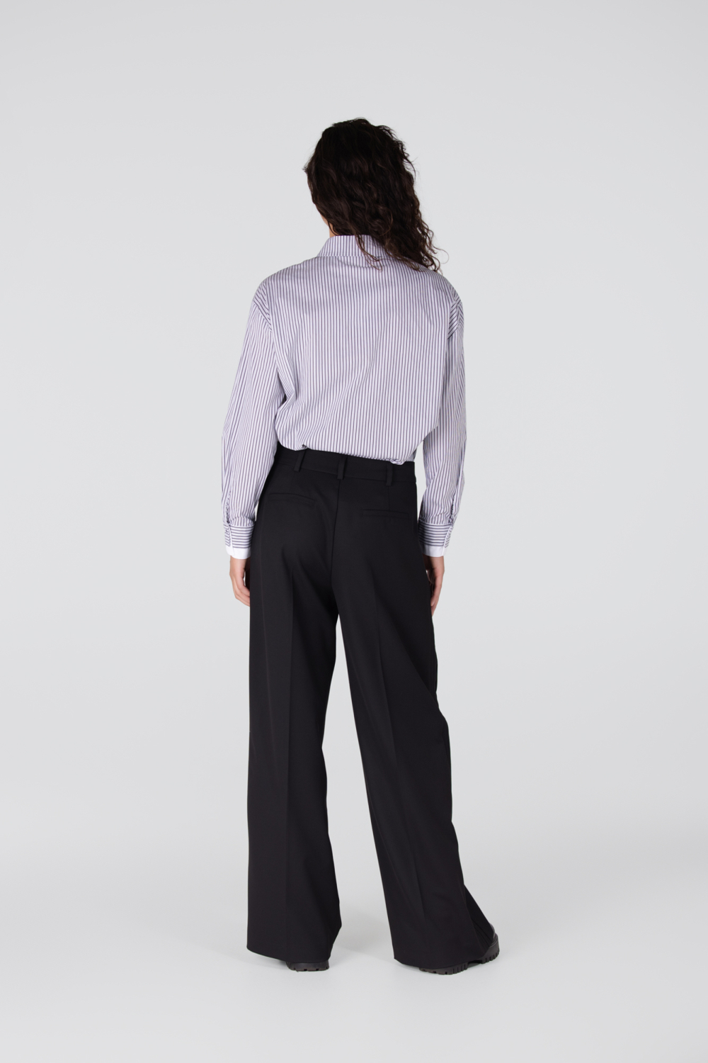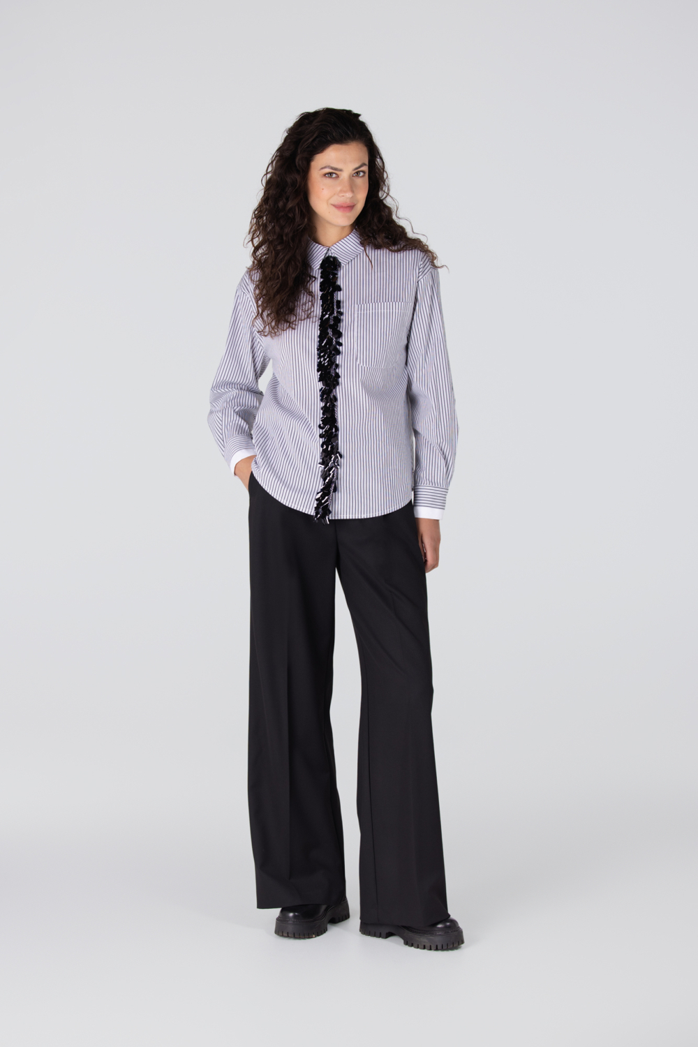Deze chique damesblouse van Juffrouw Jansen is een stijlvolle toevoeging aan je garderobe. De blouse is uitgevoerd in een verfijnd streepjespatroon en heeft een elegante blinde knoopsluiting. Met een puntkraag en lange mouwen biedt het een klassieke uitstraling, terwijl de opvallende zwarte versiering langs de sluiting voor een unieke twist zorgt. Het subtiele gebruik van borstzakken voegt een praktische, maar ook decoratieve touch toe. Gemaakt van 70% katoen, 27% polyamide en 3% elastan, biedt deze blouse comfort en bewegingsvrijheid, ideaal voor dagelijkse en speciale gelegenheden. De regular fit zorgt voor een ontspannen pasvorm die perfect is voor de herfst. Combineer deze blouse met een nette pantalon voor een verfijnde look op kantoor, of draag hem casual tijdens een etentje. De veelzijdigheid maakt het een must in elke kledingkast, geschikt voor zowel zakelijke als meer ontspannen settings.
