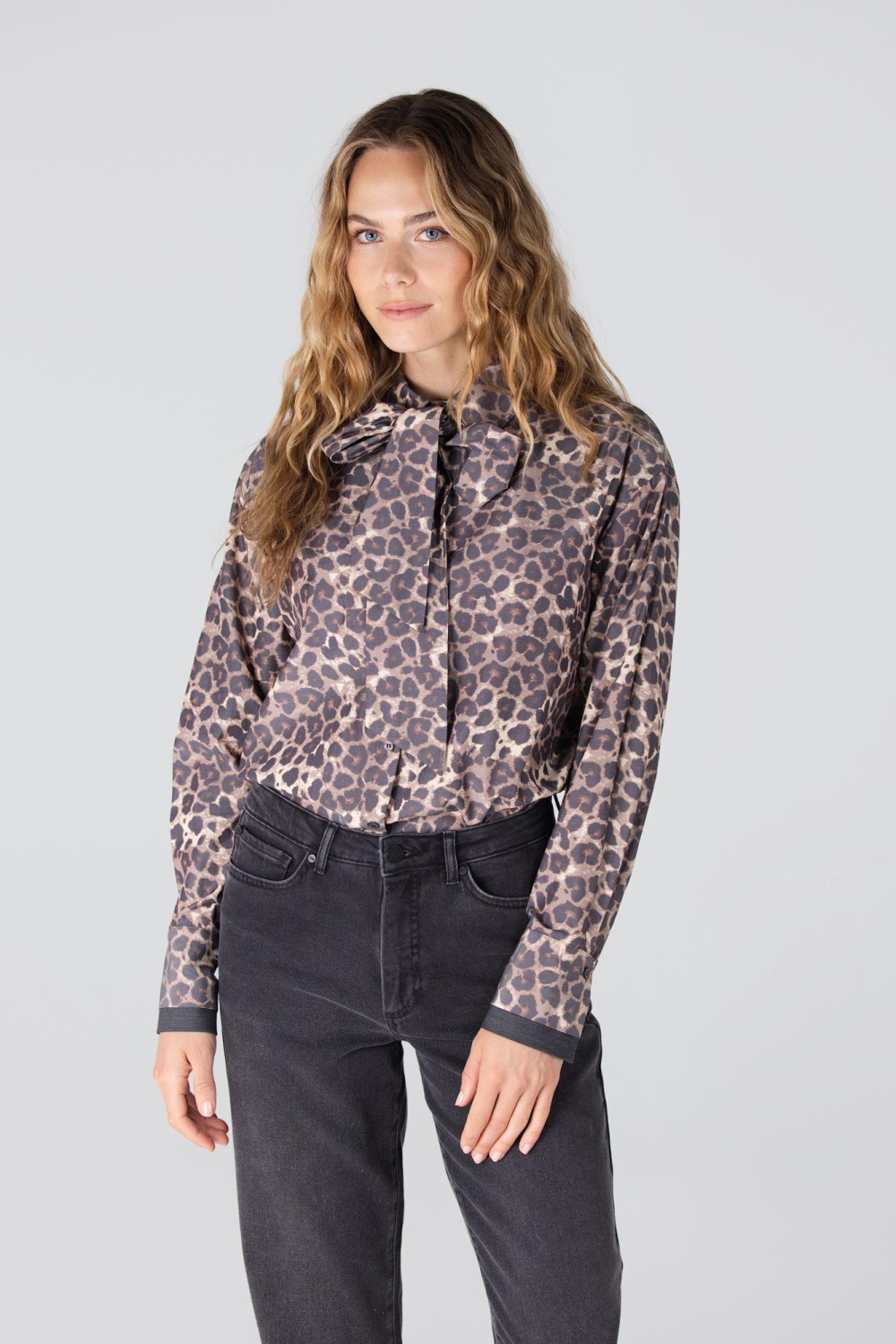 De Juffrouw Jansen damesblouse is een stijlvolle toevoeging aan je najaarsgarderobe. Met het opvallende dierenpatroon en de speelse strik bij de hals, geeft deze blouse een eigentijdse twist aan je casual look. De regular fit zorgt voor een comfortabele pasvorm, terwijl de lange mouwen hem perfect maken voor koelere dagen. De blouse is vervaardigd uit een kwalitatieve stofmix van 73% polyester, 22% viscose en 5% elastaan, waardoor hij soepel valt en zacht aanvoelt op de huid. Dankzij de klassieke puntkraag en de knoopsluiting kun je deze blouse makkelijk combineren met zowel jeans als een nette broek. Ideaal voor een dag op kantoor of een ontspannen weekenduitje. De combinatie van het tijdloze dessin en de modern getailleerde pasvorm maakt dit kledingstuk een must-have voor elke vrouw die houdt van een mix van elegantie en comfort. Draag hem met je favoriete sneakers voor een casual look of kies voor enkellaarsjes voor een meer geklede uitstraling.