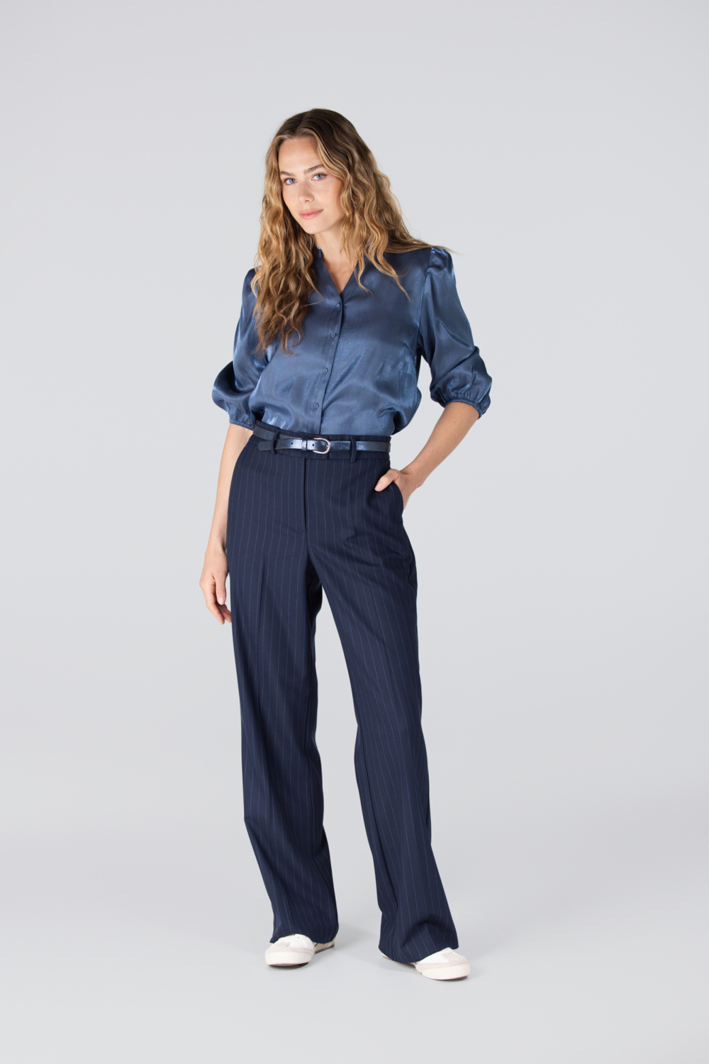 De broek van Juffrouw Jansen, uitgevoerd in een stijlvolle dark blue tint met subtiele streep, is een veelzijdige toevoeging aan jouw garderobe. Met een high waist en wide leg design biedt deze broek niet alleen een elegante uitstraling, maar ook optimaal comfort. Gemaakt van een mix van polyester, viscose en elastan, valt de stof soepel en draagt hij prettig. Dankzij de steekzakken, knoop- en ritssluiting, is de broek niet alleen mooi maar ook praktisch in gebruik. Deze broek is een ideale keuze voor dames die een casual stijl waarderen maar toch een verfijnde touch willen behouden. Perfect voor een dag op kantoor of een ontspannen weekend, combineer je deze broek eenvoudig met een blouse of casual top. Het tijdloze ontwerp en de normale lengte maken het gemakkelijk te dragen, ongeacht de gelegenheid. Met de Juffrouw Jansen broek ben je altijd stijlvol voor zowel informele als meer geklede momenten.