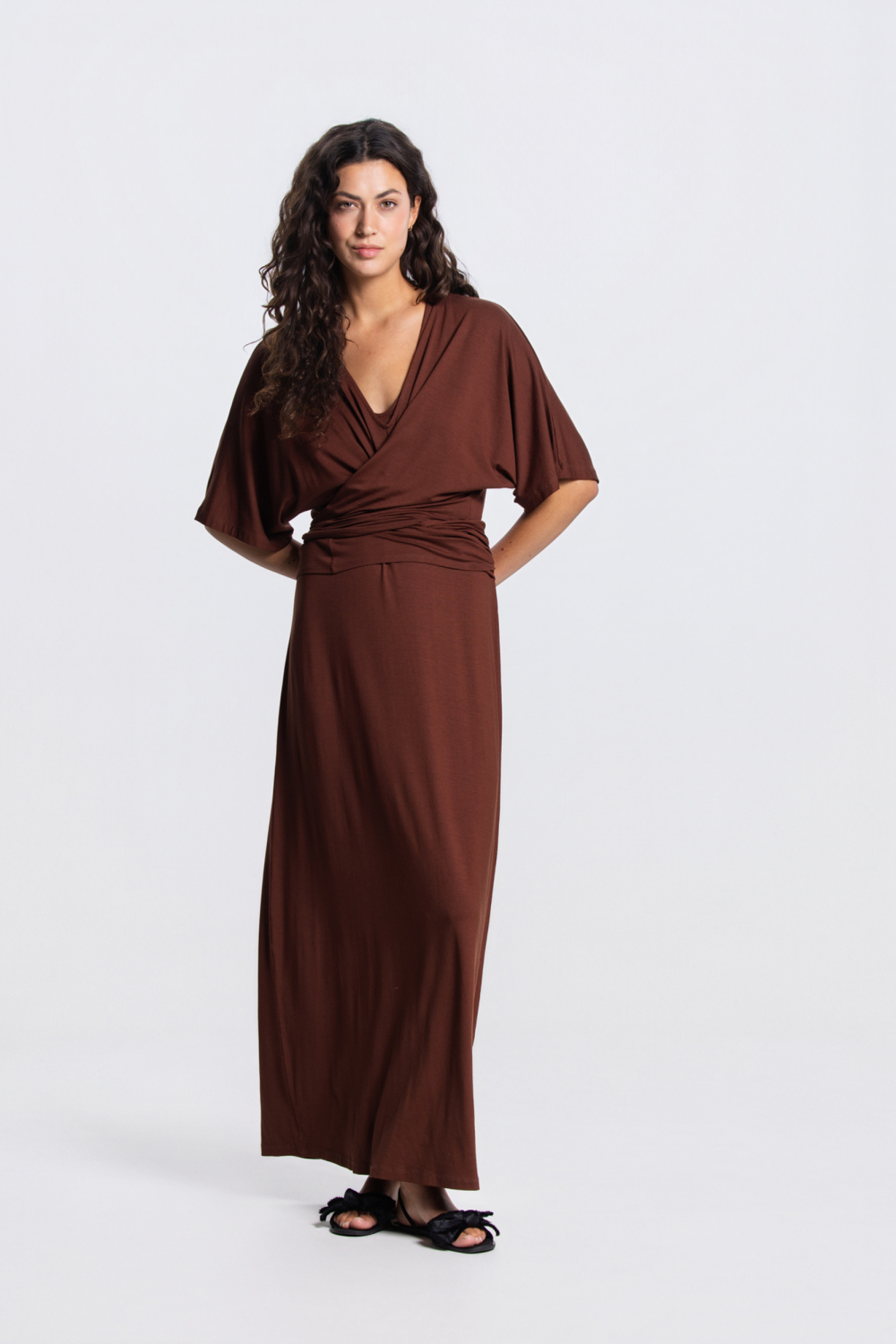 Deze stijlvolle lange jurk van Juffrouw Jansen is een elegante toevoeging aan je zomercollectie. Gemaakt van hoogwaardig materiaal met 96% viscose en 4% elastan, biedt deze jurk een comfortabele pasvorm die soepel om je lichaam valt. De warme bruine kleur en de V-hals geven de jurk een tijdloze en veelzijdige uitstraling die perfect geschikt is voor zowel casual als meer formele gelegenheden. Zonder voering en met een mouwloos ontwerp, is deze jurk licht en luchtig, ideaal voor warme zomerdagen. De rug heeft een unieke gekruiste band, wat een speelse twist toevoegt aan het ontwerp. Dit maakt de jurk perfect voor een dagje uit, een ontspannen lunch of een zomerse avondwandeling. Combineer de jurk met je favoriete sandalen voor een casual look, of met elegante hakken voor een meer geklede gelegenheid. Of je nu een dag op kantoor hebt of een avondje uit plant, deze jurk van Juffrouw Jansen is een veelzijdige keuze die stijl en comfort naadloos combineert. Meer informatie: De totale lengte is 138 cm bij maat S.