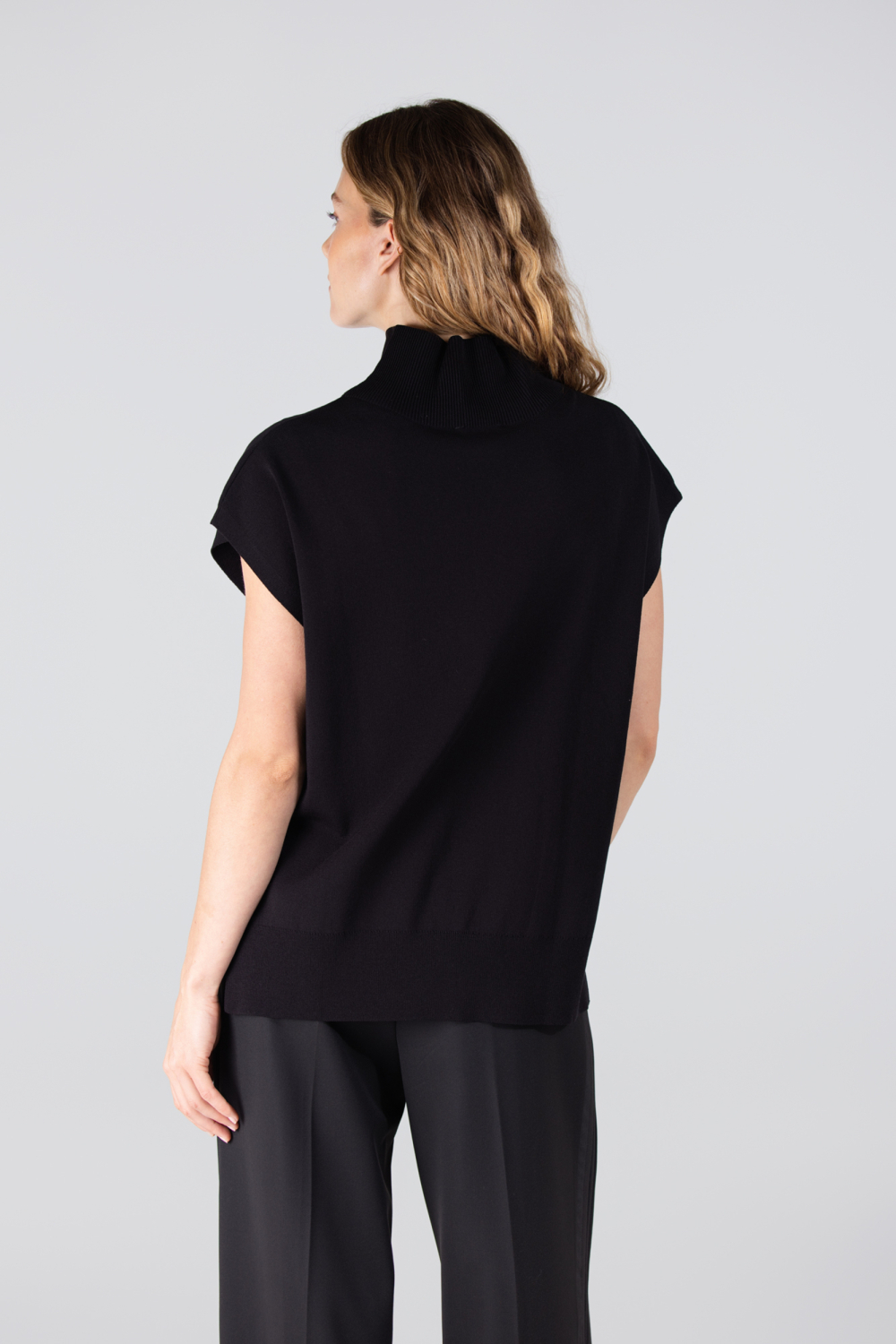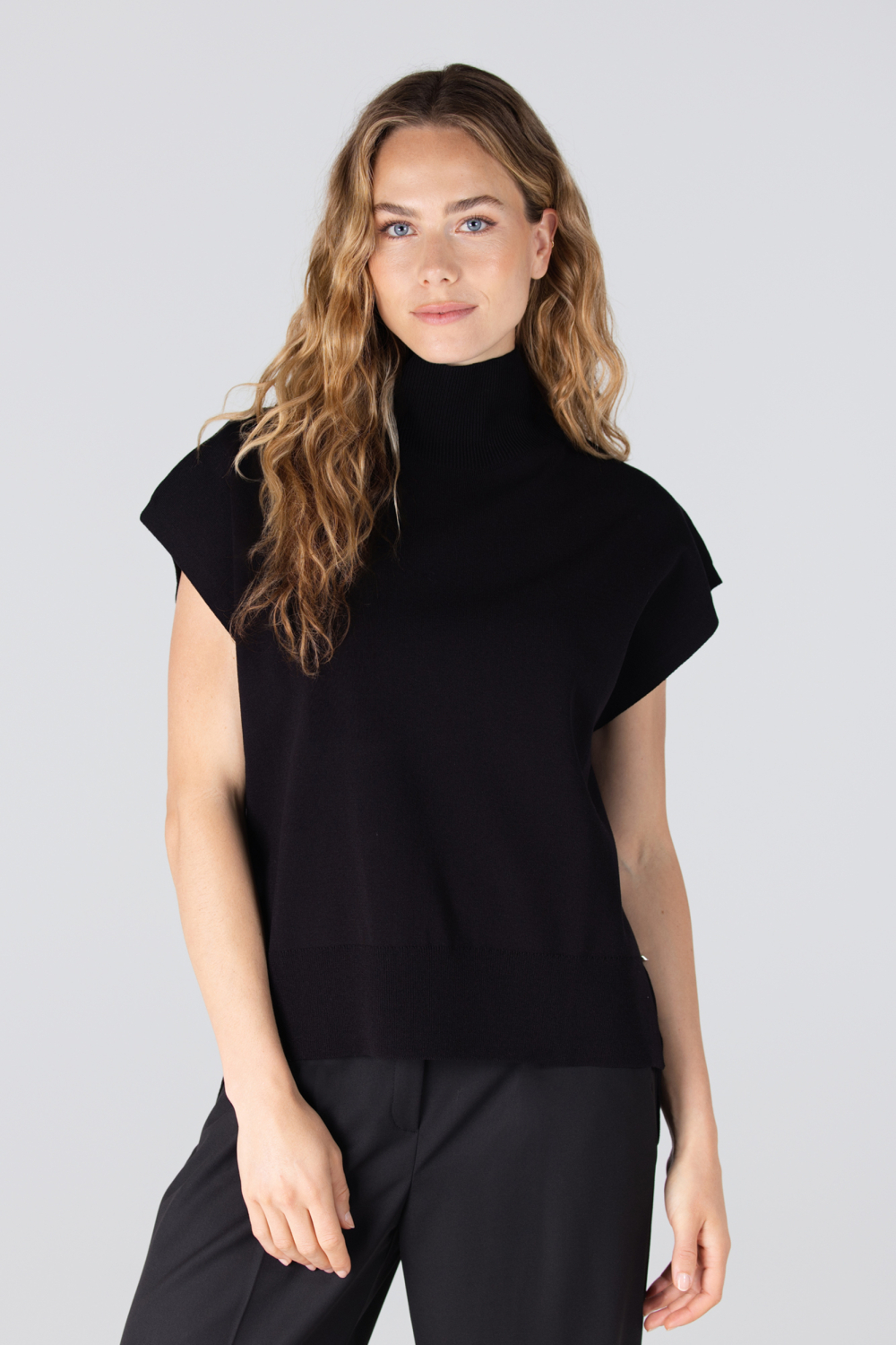 Dit comfortabele zwarte Juffrouw Jansen gilet is een veelzijdige toevoeging aan je herfstgarderobe. Met zijn oversized pasvorm en high neck biedt dit knitwear gilet niet alleen warmte, maar ook een eigentijdse look. De fijne mix van 78% viscose en 22% polyester zorgt voor een zachte, soepele stof die prettig aanvoelt en mooi valt. De mouwloze uitvoering maakt het een ideale laag over een blouse of shirt voor een gelaagde outfit. Of je nu een dag op kantoor hebt of een gezellig etentje met vrienden, dit gilet is een geschikte keuze. De klassieke zwarte kleur en het eenvoudige ontwerp maken het gemakkelijk te combineren met diverse stijlen en kleuren. Draag het boven een casual jeans voor een ontspannen look of combineer het met een nette broek voor een wat formelere uitstraling. Dit gilet is een praktische en stijlvolle optie die je het hele seizoen door kunt dragen.