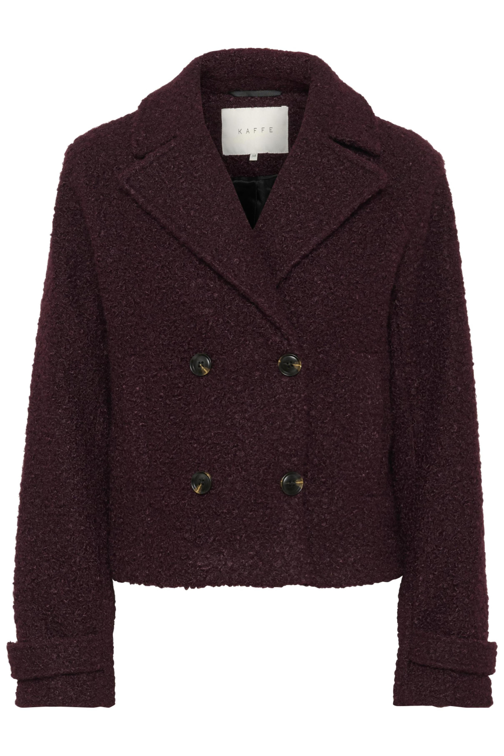 Deze elegante jas van Kaffe is een perfecte keuze voor elke vrouw die op zoek is naar stijlvolle herfstkleding. Gemaakt van 90% polyester en 10% viscose, biedt deze jas niet alleen een comfortabele pasvorm maar ook een verfijnd gevoel. De rijke bordeauxrode kleur en de structuur in de stof voegen een bijzondere touch toe aan je outfit. Dankzij de regular fit en de reverskraag krijg je een klassieke uitstraling, terwijl de dubbele knoopsluiting een extra laag verfijning geeft.
