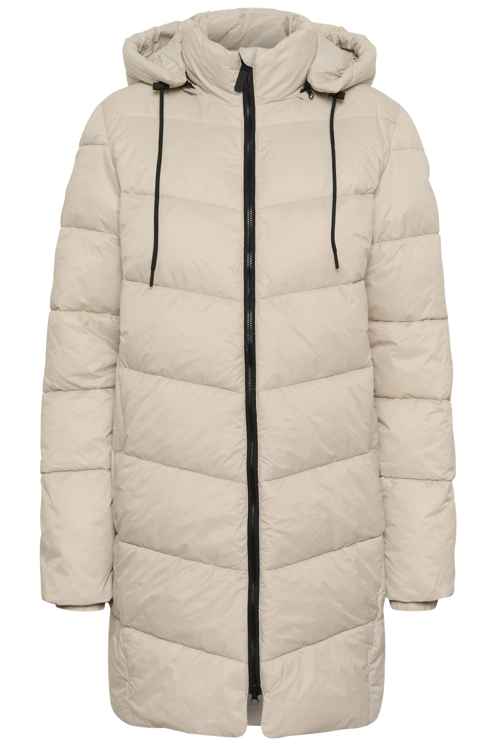 Deze casual damesjas van Kaffe is een stijlvolle keuze voor het herfstseizoen. De jas, gemaakt van 100% polyamide, biedt een comfortabele regular fit en is gevoerd met gewatteerd polyester voor extra warmte. De beige kleur en de opvallende zwarte ritssluiting zorgen voor een moderne uitstraling die je makkelijk kunt combineren met verschillende outfits. De capuchon biedt extra bescherming tegen koude en wind, terwijl de handige steekzakken ruimte bieden voor je essentials.