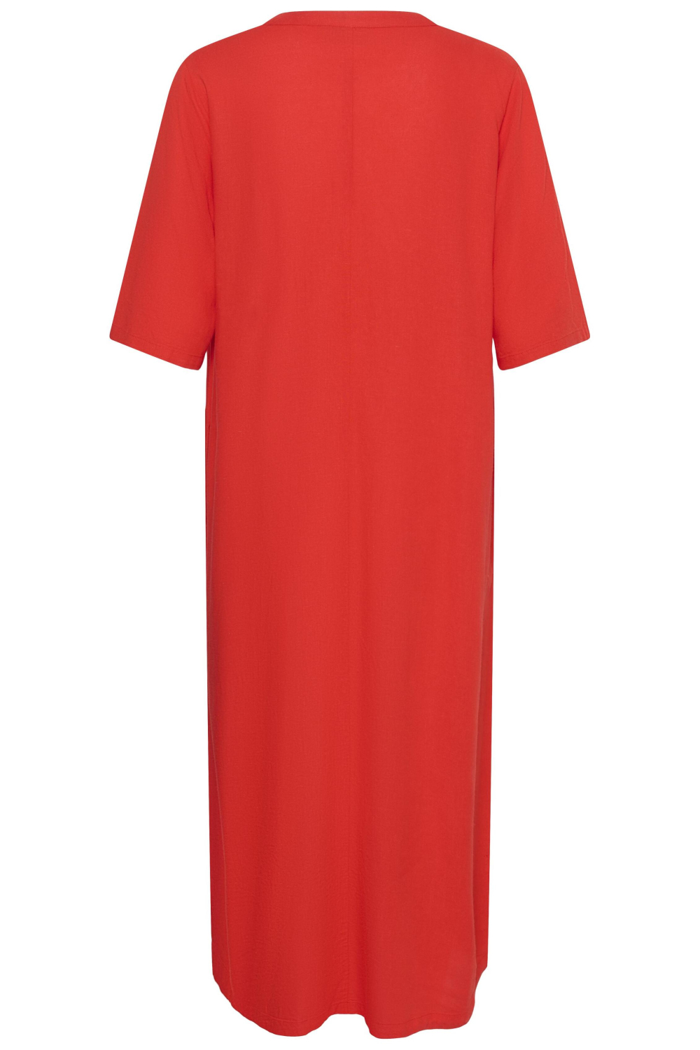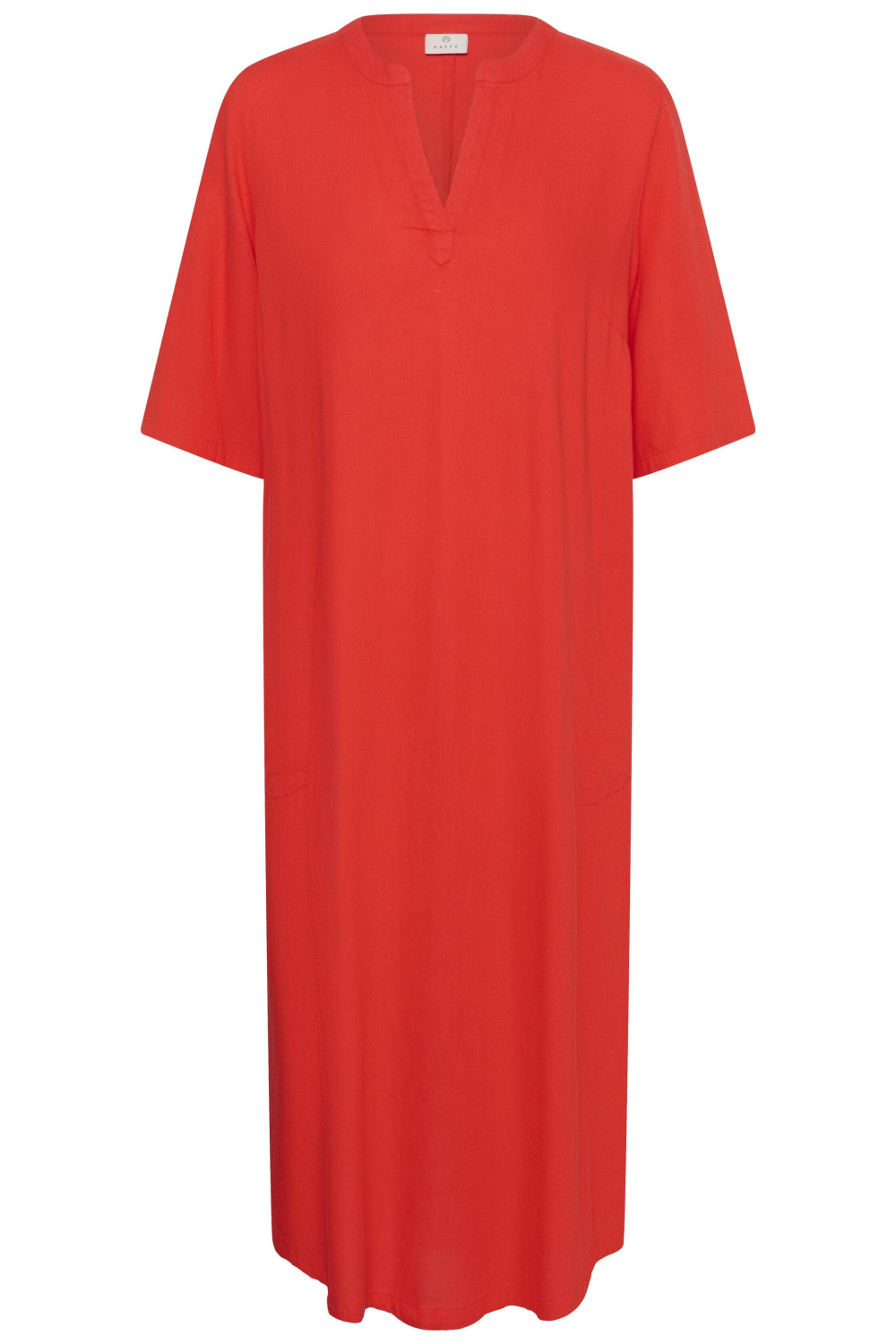 Deze zomerse Kaffe jurk in de levendige kleur Poppy Red is een ideale keuze voor elke casual gelegenheid. De jurk heeft een comfortabele regular fit en valt met zijn 7/8 lengte prachtig rondom je benen. Met de stijlvolle V-halslijn en korte mouwen creëert deze jurk een luchtige look zonder aan elegantie in te boeten. De steekzakken zijn praktisch en voegen een ontspannen, nonchalante touch toe aan het geheel. De jurk straalt eenvoud en verfijning uit, wat hem perfect maakt voor warme zomerdagen in de stad of een ontspannen dagje aan het strand. Het lichte materiaal zorgt voor een comfortabele pasvorm, terwijl de kleur een vleugje vrolijkheid toevoegt aan je garderobe. Of je nu op zoek bent naar iets voor alledaags gebruik of een uitstapje, deze jurk biedt je een veelzijdige stijloptie waar je op kunt vertrouwen. Meer informatie: De totale lengte is 127 cm bij maat 36.
