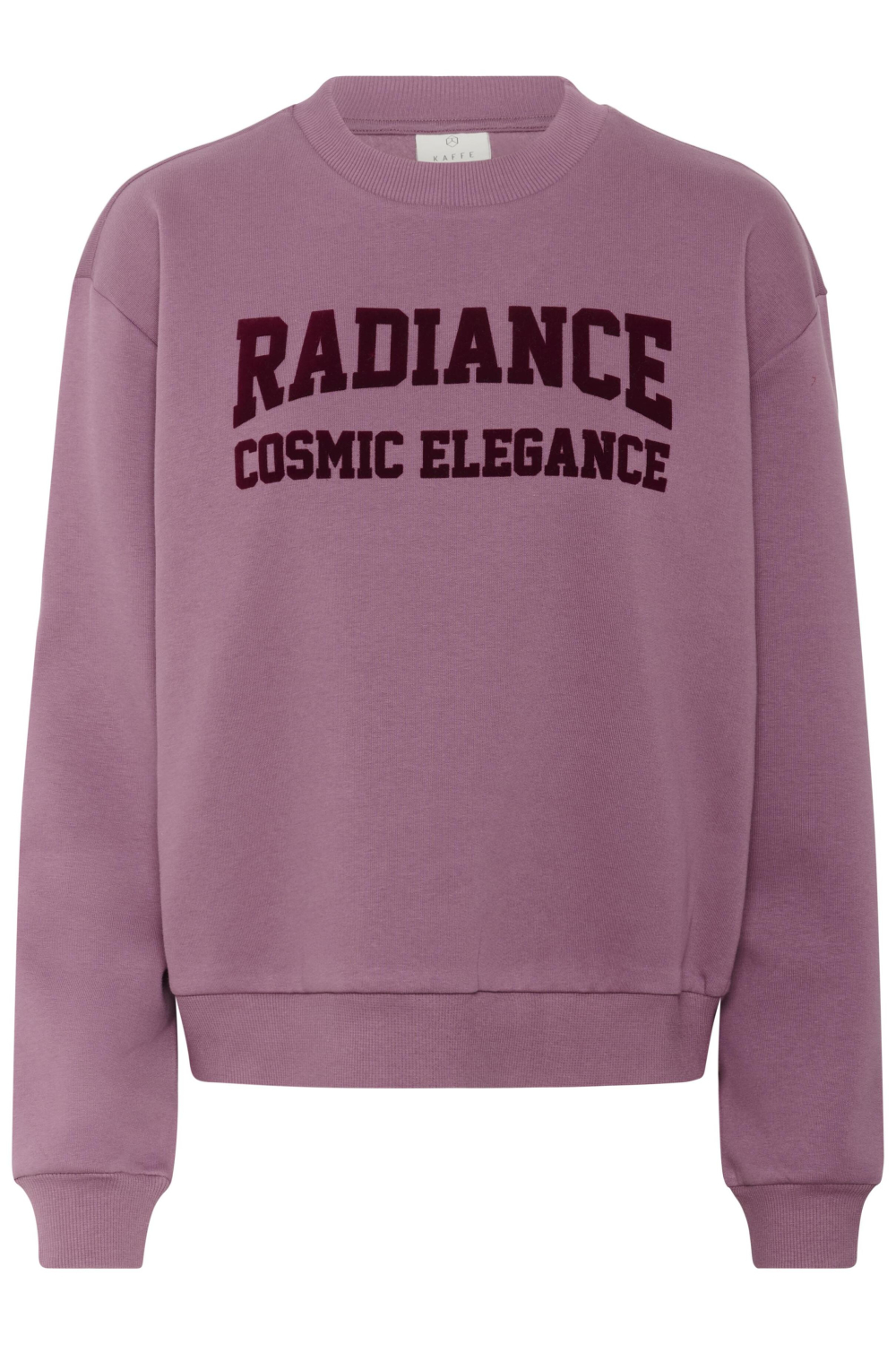 Deze casual sweater van Kaffe is een veelzijdige keuze voor je wintergarderobe. Gemaakt van een zachte mix van 70% katoen en 30% polyester, biedt deze sweater een comfortabele pasvorm die ideaal is voor dagelijks gebruik. De opvallende paarse kleur in combinatie met de tekstprint "RADIANCE COSMIC ELEGANCE" op de borst geeft de sweater een trendy uitstraling. Met zijn ronde hals en lange mouwen draag je deze sweater met gemak op de koudere dagen. De regular fit zorgt voor een ontspannen silhouet dat goed combineert met een jeans of een comfortabele broek. Deze sweater is perfect voor een ontspannen dagje thuis, maar kan ook prima gedragen worden tijdens een casual uitje. De sweatstof voelt aangenaam warm en zacht aan, terwijl de normale lengte ervoor zorgt dat de sweater netjes en gestroomlijnd oogt. Voeg deze stijlvolle extra aan je collectie toe en ervaar comfort en stijl in één.