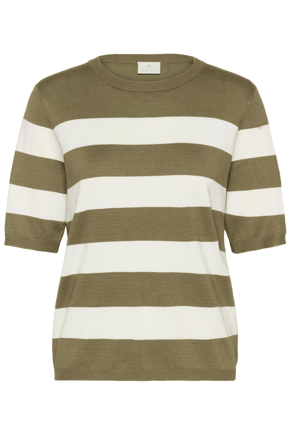Deze stijlvolle trui van Kaffe, met zijn kenmerkende streepdesign in olijfgroen en wit, is een eigentijdse toevoeging aan je voorjaarsgarderobe. De regular fit pasvorm gecombineerd met een comfortabele ronde hals maakt deze trui zowel modern als prettig om te dragen. Gemaakt van 80% viscose en 20% nylon, voelt het materiaal licht en ademend aan, perfect voor milde dagen. Met zijn korte mouwen is deze Kaffe trui ideaal voor verschillende gelegenheden. Draag hem casual met een jeans voor een informele lunchafspraak, of combineer met een nette pantalon voor een iets formelere setting. De normale lengte zorgt ervoor dat hij makkelijk te combineren is met andere kledingstukken in je kast. Of je nu onderweg bent naar kantoor of een middagje uit plant, deze trui biedt veelzijdige stijl zonder compromissen.