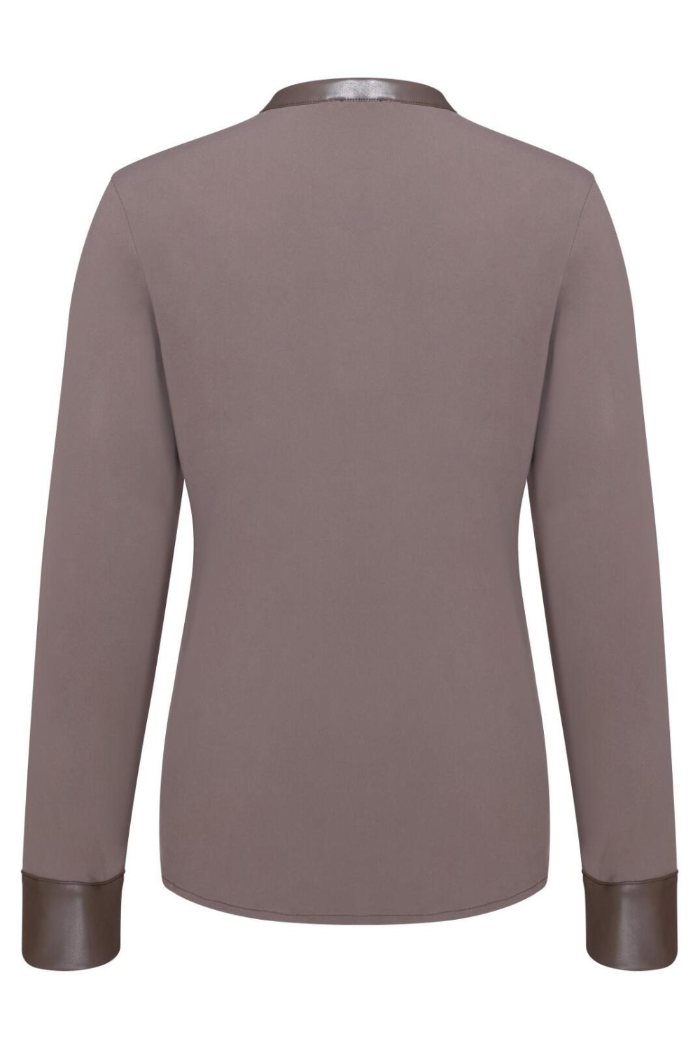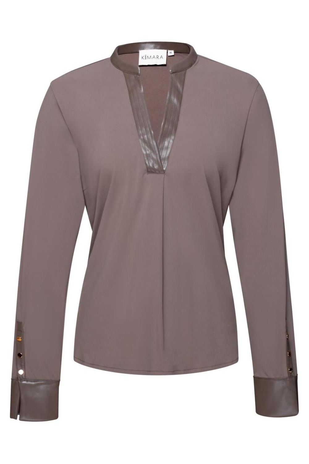 Deze Kimara blouse in de zachte ASH MIST tint is een elegante aanvulling op je garderobe. De blouse heeft een casual stijl met een eigentijdse twist, dankzij het imitatieleer detail langs de V-hals en manchetten. Gemaakt van 80% polyamide en 20% elastan, biedt de blouse een soepele pasvorm die jouw comfort gedurende de hele dag verzekert. Met zijn regular fit en normale lengte is deze blouse geschikt voor diverse gelegenheden, of je nu een ontspannen dag op kantoor hebt of een informele bijeenkomst in de avond.