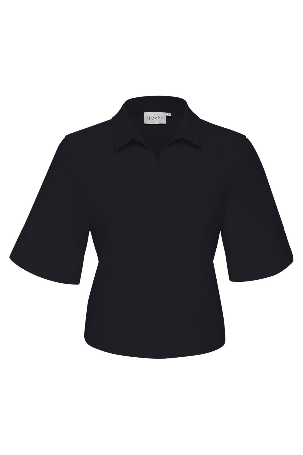 Deze Kimara blouse in de kleur 410 DARK BLUE is een stijlvolle en duurzame keuze voor de lente. Met een oversized pasvorm en korte mouwen biedt deze damesblouse van 80% polyamide en 20% elastan zowel comfort als stijl. De blinde ritssluiting aan de voorkant en de klassieke puntkraag geven het een strakke, moderne uitstraling. Dankzij de korte lengte en het casual ontwerp is het een veelzijdig item dat je gemakkelijk kunt combineren. Of je nu een dagje op kantoor hebt of een informeel etentje, deze blouse past perfect bij verschillende gelegenheden. Combineer het met een strakke broek of een denim voor een casual look, of kies voor een meer geklede uitstraling met een chique rok. De donkerblauwe kleur is tijdloos en makkelijk te combineren, waardoor deze blouse een waardevolle aanvulling op je garderobe is. Dankzij de gebruikte materialen voel je je de hele dag comfortabel en stijlvol.