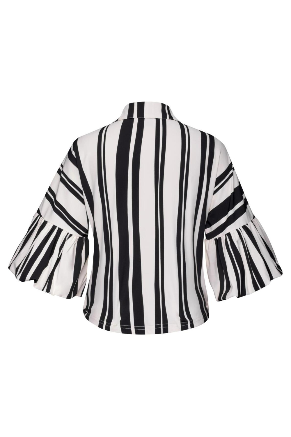 Deze opvallende gestreepte blouse van Kimara biedt een speelse touch aan je kledingkast. De blouse is gemaakt van 80% polyamide en 20% elastan, wat zorgt voor een comfortabele en lichtgewicht ervaring. Met zijn oversized pasvorm en korte lengte, creëert hij een relaxte look die je makkelijk kunt dragen bij diverse gelegenheden. De zwart-witte strepen voegen een gedurfde visuele dynamiek toe, terwijl de puntkraag en knoopsluiting een klassiek element behoudt. De 3/4 mouwen met ruche details geven een extra vleugje flair aan de casual stijl van de blouse. Het item is ideaal voor de lente, wanneer je op zoek bent naar lichte lagen die je eenvoudig kunt combineren. Deze Kimara blouse is een veelzijdige keuze die zowel geschikt is voor een dag op kantoor als een informele lunchdate. Combineer hem met een effen broek of een jeans voor een stijlvolle, maar moeiteloze uitstraling.