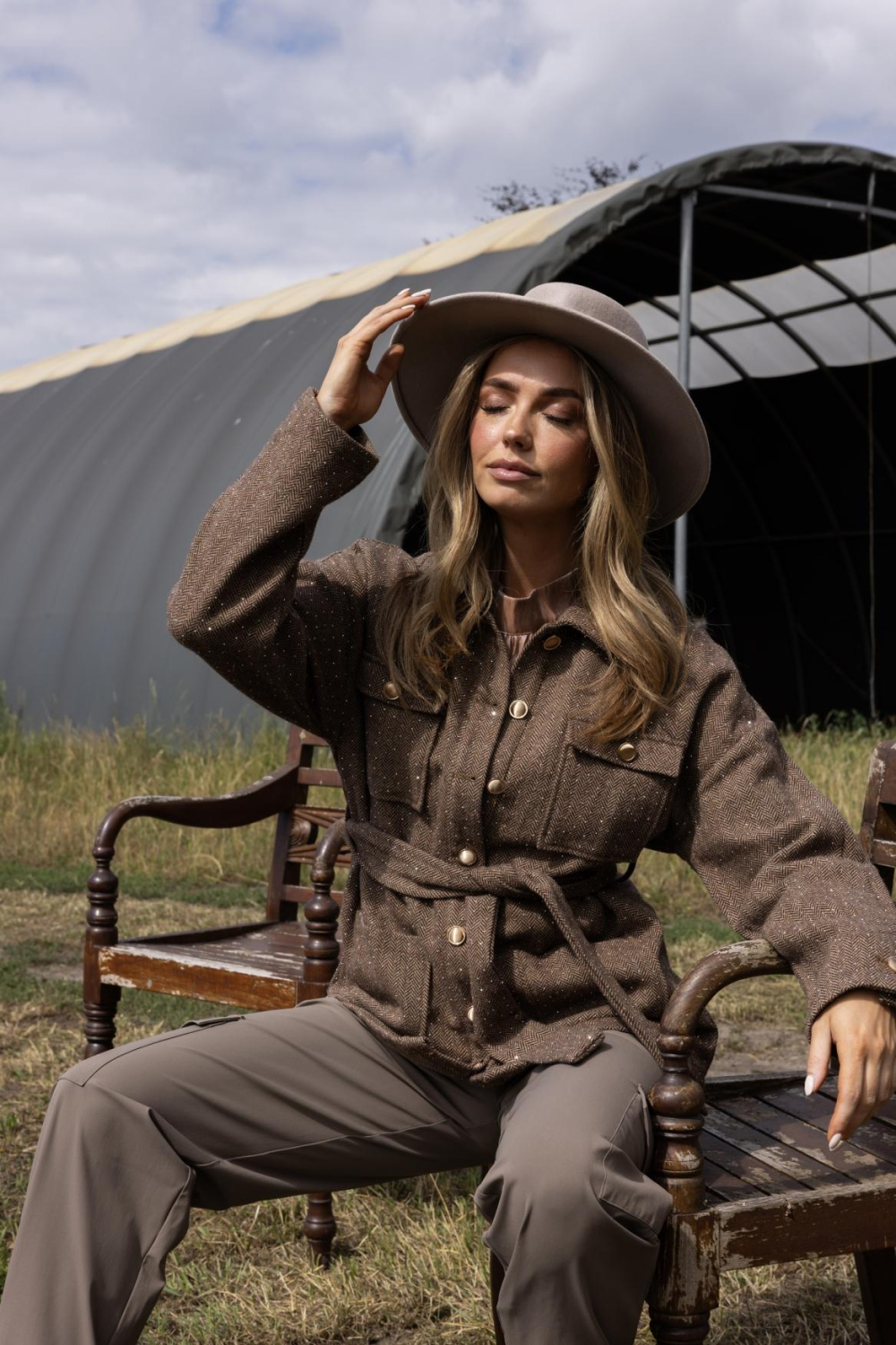 De Kimara damesjas in de kleur 1103 Cider Wood is een veelzijdig en stijlvol item voor het winterseizoen. Met de combinatie van 70% wol en 30% polyester biedt deze jas een perfecte balans tussen warmte en duurzaamheid. De jas heeft een opvallend strasspatroon dat je look net dat beetje extra flair geeft. Dankzij de puntkraag en de lange mouwen straalt deze jas een klassieke en toch moderne uitstraling uit. De borstzakken zijn zowel praktisch als modieus, waardoor je al je essentials bij de hand hebt.