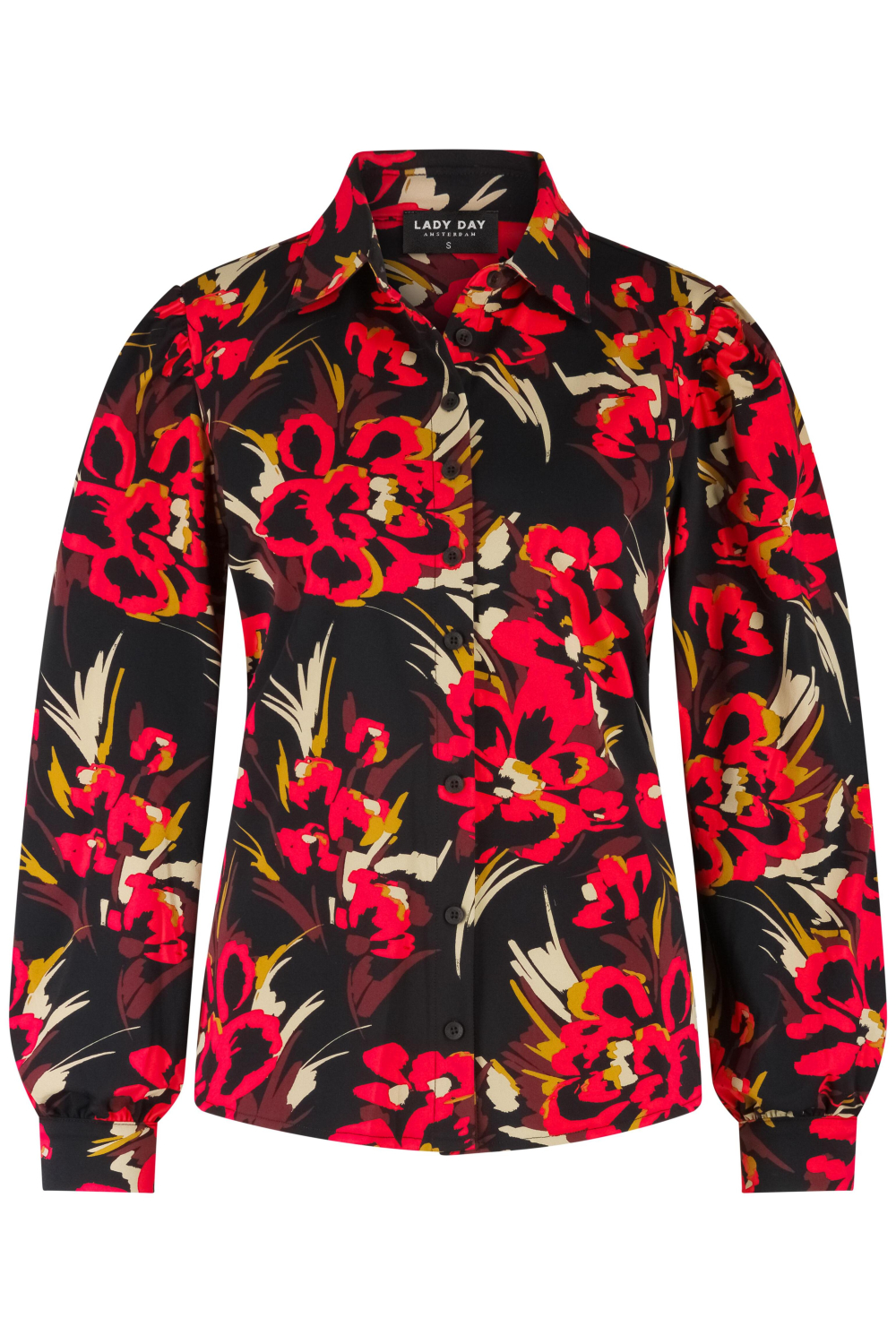 Deze Lady Day blouse met bloemenprint is een opvallend stuk in je wintergarderobe. Gemaakt van 80% polyamide en 20% elastaan, biedt deze blouse een zachte en flexibele stof die comfortabel aanvoelt tijdens de koudere dagen. Met zijn kleurrijke bloemenpatroon op een zwarte achtergrond, voegt het een vleugje levendigheid toe aan je outfit zonder te overdrijven. De regular fit en lange mouwen geven je een klassieke look, terwijl de puntkraag en knoopsluiting zorgen voor een verfijnde uitstraling.