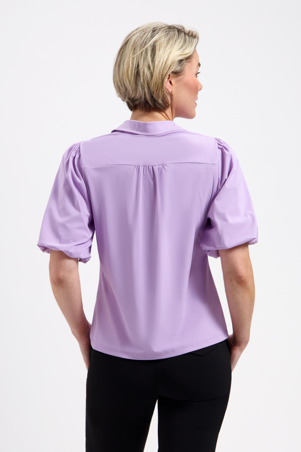 Deze stijlvolle damesblouse van Lady Day is een veelzijdig kledingstuk dat comfort en elegantie combineert. Gemaakt van een mix van 80% polyamide en 20% elastaan, biedt deze blouse een aangename stretch en zachtheid. Met de klassieke lila kleur voeg je een subtiele en vrouwelijke touch toe aan je garderobe. De regular fit pasvorm zorgt voor comfort en bewegingsvrijheid, ideaal voor dagelijkse activiteiten of een casual uitje. De puntkraag en knoopsluiting geven deze blouse een tijdloze uitstraling, terwijl de lichte plooien bij de schouders een speelse twist toevoegen. Perfect voor zomerse dagen, deze blouse met korte mouwen houdt je koel en stijlvol. Combineer het met een nette pantalon voor een moderne, professionele look, of draag het met jeans voor een casual ensemble. Het is een duurzame keuze die lang meegaat, zonder afbreuk te doen aan stijl. Of je nu naar een lunchafspraak gaat of een middagje in de stad doorbrengt, deze Lady Day blouse zorgt ervoor dat je er verzorgd uitziet en je zelfverzekerd voelt.
