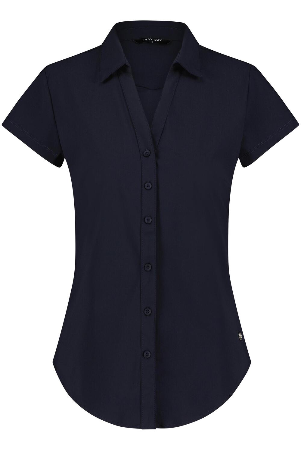 Deze elegante blauwe blouse van Lady Day is een perfecte toevoeging aan je casual garderobe. Met zijn regular fit pasvorm biedt het een comfortabele en moeiteloze stijl die je dag en nacht kunt dragen. De blouse is gemaakt van een duurzame mix van 80% polyamide en 20% elastan, waardoor het een lichte rek heeft en mooi aansluit op het lichaam. De klassieke puntkraag en knoopsluiting geven een verfijnde uitstraling zonder te formalistisch te zijn. De kap mouwen maken deze blouse ideaal voor warmer weer, terwijl de normale lengte zorgt voor een veelzijdige look die zowel in als over een broek gedragen kan worden. Of je nu naar kantoor gaat of een ontspannen lunch hebt, deze blouse is een goede match voor allerlei gelegenheden. De diepe blauwe kleur zorgt ervoor dat je hem makkelijk kunt combineren met andere items uit je garderobe. Kortom, een stijlvolle keuze die je elke dag weer kunt dragen.