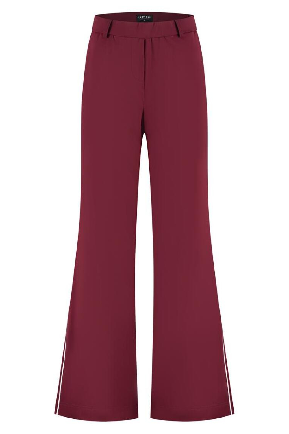 Deze elegante burgundy broek van Lady Day is een stijlvolle toevoeging aan je garderobe. Met een wide leg pasvorm en een regular waist ontwerp, biedt deze broek luxe comfort zonder in te boeten op stijl. De elastische boord zorgt ervoor dat je de broek eenvoudig kunt aanpassen voor een perfecte pasvorm. De subtiele steekzakken zijn niet alleen praktisch, maar voegen ook een nonchalante flair toe. Gemaakt van 80% polyamide en 20% elastan, is deze broek ideaal voor een casual dagje uit, maar kan ook gemakkelijk gestyled worden voor een meer formele gelegenheid. Dankzij het duurzame materiaal en de chique uitstraling van de diepe burgundy tint, past deze broek perfect bij de lente- en zomergarderobe. Combineer hem met een blouse of een T-shirt voor een moeiteloos elegante look. Deze Lady Day broek is zeker een veelzijdige keuze voor dagelijks gebruik en speciale momenten.