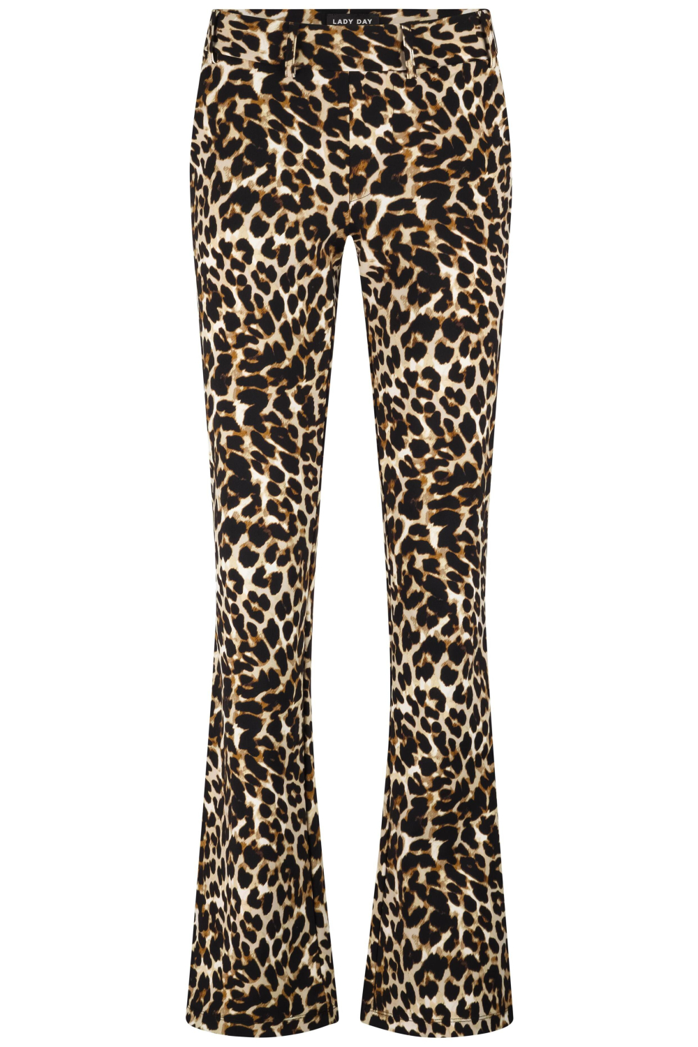 Deze stijlvolle flared broek van Lady Day is een casual en modieuze keuze voor elke dame. Met zijn opvallende leopard print en regular waist biedt de broek een speelse touch aan je wintergarderobe. Gemaakt van 80% polyamide en 20% elastan, zorgt het materiaal voor een comfortabele en aansluitende pasvorm die perfect voor dagelijks gebruik is. De steekzakken geven een praktische touch, terwijl de elastische boord bijdraagt aan het draagcomfort. De animal print maakt deze broek een echte eyecatcher, ideaal voor een stijlvolle dag op kantoor of een ontspannen avond uit. Combineer de broek met een eenvoudige top voor een evenwichtige look, of ga voor een gedurfde outfit door te experimenteren met andere prints en accessoires. Of je nu een relaxte brunch hebt met vrienden of een casual dagje shoppen plant, deze Lady Day broek zal zeker je outfit compleet maken.