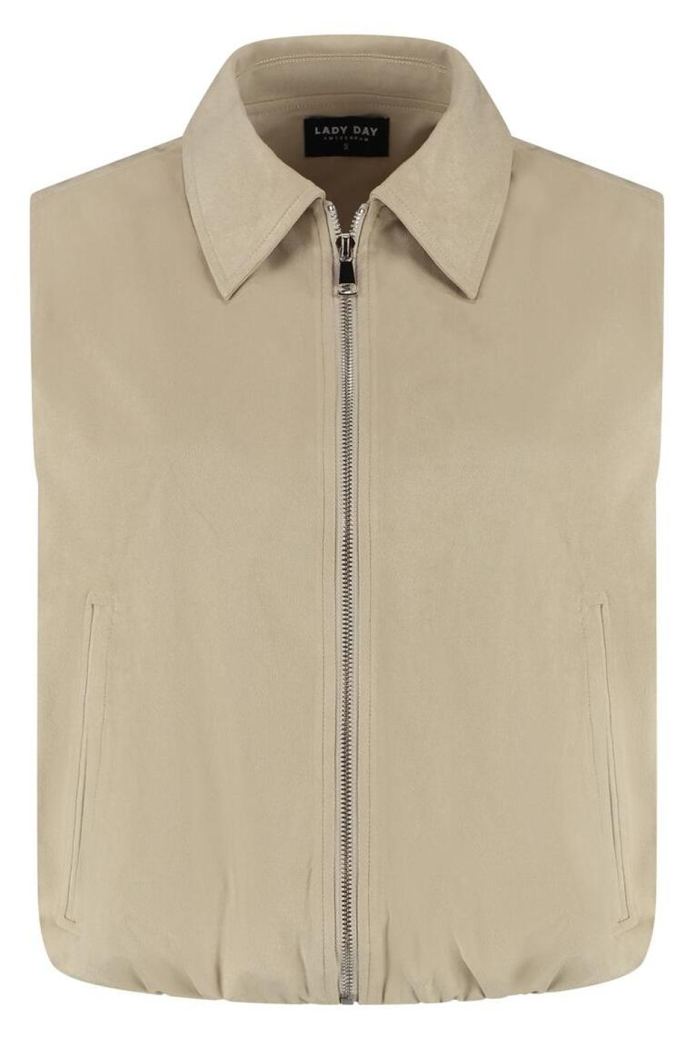 Dit Lady Day gilet is een stijlvolle toevoeging aan jouw zomergarderobe. Met zijn sandkleurige suedine-look straalt het een casual elegantie uit die perfect aansluit bij uiteenlopende outfits. De regular fit en het mouwloze ontwerp zorgen voor een comfortabele pasvorm, terwijl de ritssluiting aan de voorkant een modern tintje geeft. De subtiele puntkraag voegt een klassieke touch toe, en de steekzakken bieden praktische opbergruimte voor kleine essentials. Gemaakt van een blend van 92% polyester en 8% elastan, voelt dit gilet licht en soepel aan op de huid. Of je nu een middagje in de stad doorbrengt of een informele avonduitje hebt, dit gilet is een veelzijdige keuze die je gemakkelijk kunt combineren met jeans of een luchtige broek. De normale lengte en de lichte voering maken het ideaal voor zomerse dagen wanneer je iets extra’s wilt zonder te oververhitten. Het tijdloze design en de neutrale kleurstelling zorgen ervoor dat je dit gilet seizoen na seizoen kunt dragen. Voeg dit item toe aan je collectie en ervaar de perfecte balans tussen comfort en stijl.