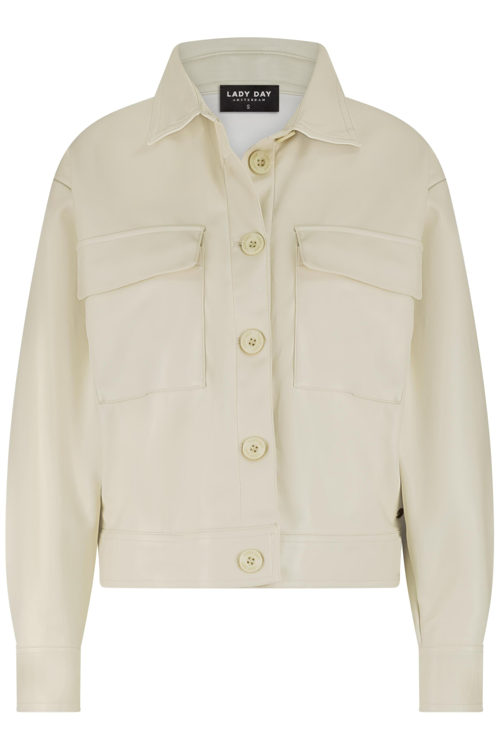 Deze stijlvolle jas van Lady Day belichaamt casual elegantie met een moderne twist. Het oversized ontwerp biedt niet alleen comfort, maar ook een verfijnde uitstraling, ideaal voor de hedendaagse vrouw. Het imitatieleer patroon in een neutrale tint zorgt ervoor dat je deze jas makkelijk combineert met diverse outfits. De puntkraag en knoopsluiting voegen een klassieke touch toe, terwijl de borstzakken praktisch zijn en de jas net dat beetje extra karakter geven. Deze jas is perfect voor de winter en past goed bij zowel een casual als iets nettere look. De lange mouwen en korte lengte maken het een ideale keuze voor frisse dagen, of je nu een ontspannen wandeling maakt of naar een informele afspraak gaat. Met de Lady Day jas voeg je een veelzijdig stuk toe aan je garderobe dat zowel comfortabel als stijlvol is, en dat moeiteloos je dagelijkse outfit compleet maakt. Meer informatie: De totale lengte is 54 cm bij maat S.