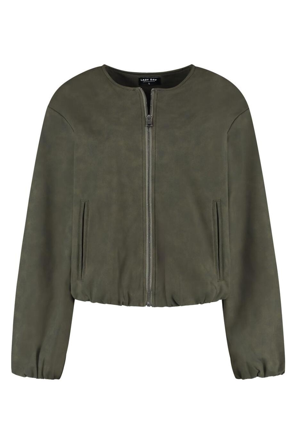 De kortere lengte van de jas maakt hem perfect voor casual settings, of je nu een wandeling maakt in de stad of een informele bijeenkomst hebt. De donkere olijfkleur biedt veelzijdigheid in het combineren met andere kledingstukken, of je nu kiest voor een jeans of een stijlvolle rok. Of je nu op weg bent naar werk of een middagje uit, deze Lady Day jas biedt de perfecte balans tussen comfort en eigentijdse stijl.