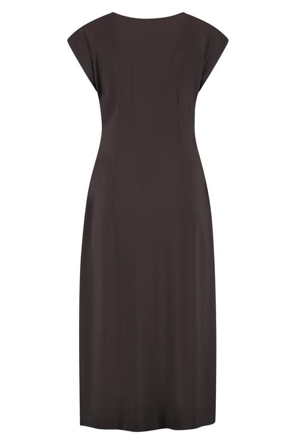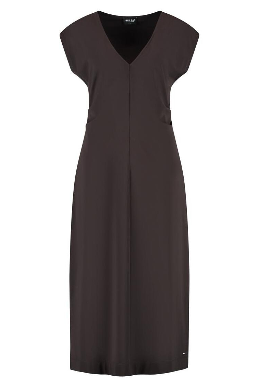 Deze elegante donkerbruine jurk van Lady Day is een perfecte aanvulling op jouw zomergarderobe. Gemaakt van een hoogwaardige mix van 80% polyamide en 20% elastan, biedt de jurk een comfortabele pasvorm die soepel rond het lichaam valt. Met zijn V-hals en korte mouwen straalt deze jurk een speelse maar stijlvolle uitstraling uit. De 7/8 lengte is ideaal voor zowel casual als meer verfijnde gelegenheden, waardoor je hem gemakkelijk kunt combineren met zowel sandalen als hakken. De regular fit en handige steekzakken maken deze jurk niet alleen een stijlvolle, maar ook praktische keuze voor dagelijks gebruik. Het minimalistische ontwerp zonder voering en zijn duurzame kenmerken maken het een bewuste keuze voor de modebewuste dame. Of je nu een dagje op het werk hebt, gaat winkelen of een informeel feestje bezoekt, deze jurk biedt je altijd het comfort en de stijl die je zoekt. Kies voor de Lady Day jurk als je modieus voor de dag wilt komen. Meer informatie: De totale lengte is 119 cm bij maat S.