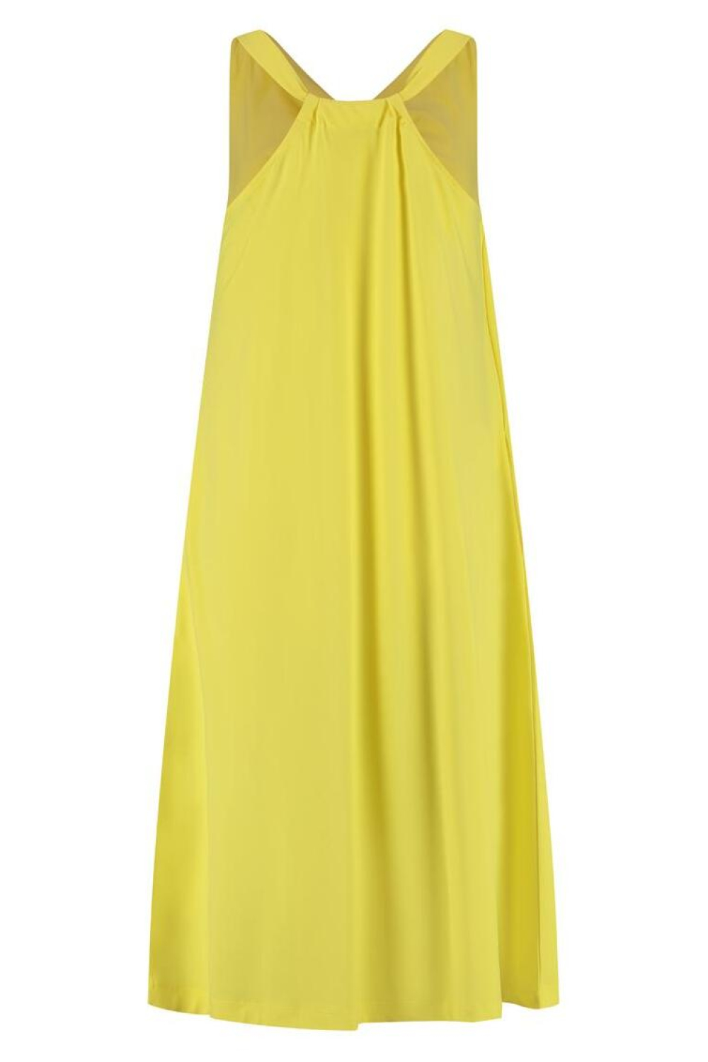 Deze zomerse Lady Day jurk is een frisse toevoeging aan je garderobe. Met zijn opvallende gele kleur en de elegante watervalhals zorgt deze mouwloze jurk voor een speelse en verfijnde uitstraling. Gemaakt van 80% polyamide en 20% elastan, biedt het een comfortabele en lichtgewicht ervaring, ideaal voor warme dagen. De jurk heeft een regular pasvorm die soepel langs het lichaam valt, waardoor je altijd op je gemak bent. Of je nu een ontspannen dag in het park doorbrengt of een informele zomerse bijeenkomst bijwoont, deze 7/8-lengte jurk past perfect bij elke gelegenheid. De steekzakken voegen een praktisch element toe zonder in te boeten op stijl. De jurk is ongevoerd, wat zorgt voor ademend vermogen en bewegingsvrijheid. Combineer deze Lady Day jurk met sandalen voor een casual look, of geef je outfit een upgrade met hakken en accessoires voor een meer geklede stijl. Laat deze duurzame jurk de ster zijn van je zomerse outfit. Meer informatie: De totale lengte is 108 cm bij maat S.