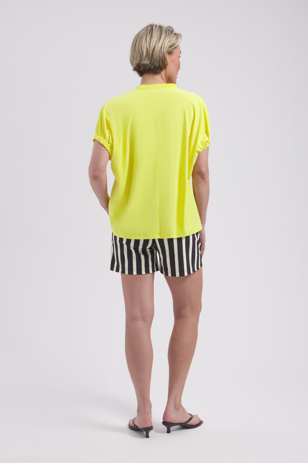 Deze stijlvolle korte broek van Lady Day is een must-have voor je zomergarderobe. Met een regular pasvorm en gestreept patroon, combineert deze broek een speelse uitstraling met comfort. De elastische boord zorgt voor een aangename pasvorm, waardoor je de hele dag probleemloos kunt bewegen. Gemaakt van 80% polyamide en 20% elastaan, biedt de broek net dat beetje extra stretch. De zwarte en beige verticale strepen geven het geheel een modern accent, perfect voor een casual dagje uit. Of je nu een dagje aan het strand doorbrengt of een informele lunch hebt met vrienden, deze casual korte broek van Lady Day is een veelzijdige keuze. Door de regular waist en normale lengte sluit de broek goed aan zonder in te boeten op comfort. De praktische steekzakken voegen niet alleen functionaliteit toe, maar verhogen ook de algehele uitstraling van de broek. Combineer met een eenvoudig T-shirt of een luchtige blouse en je bent klaar om te gaan, met een frisse en modieuze look voor elke zomerse gelegenheid.