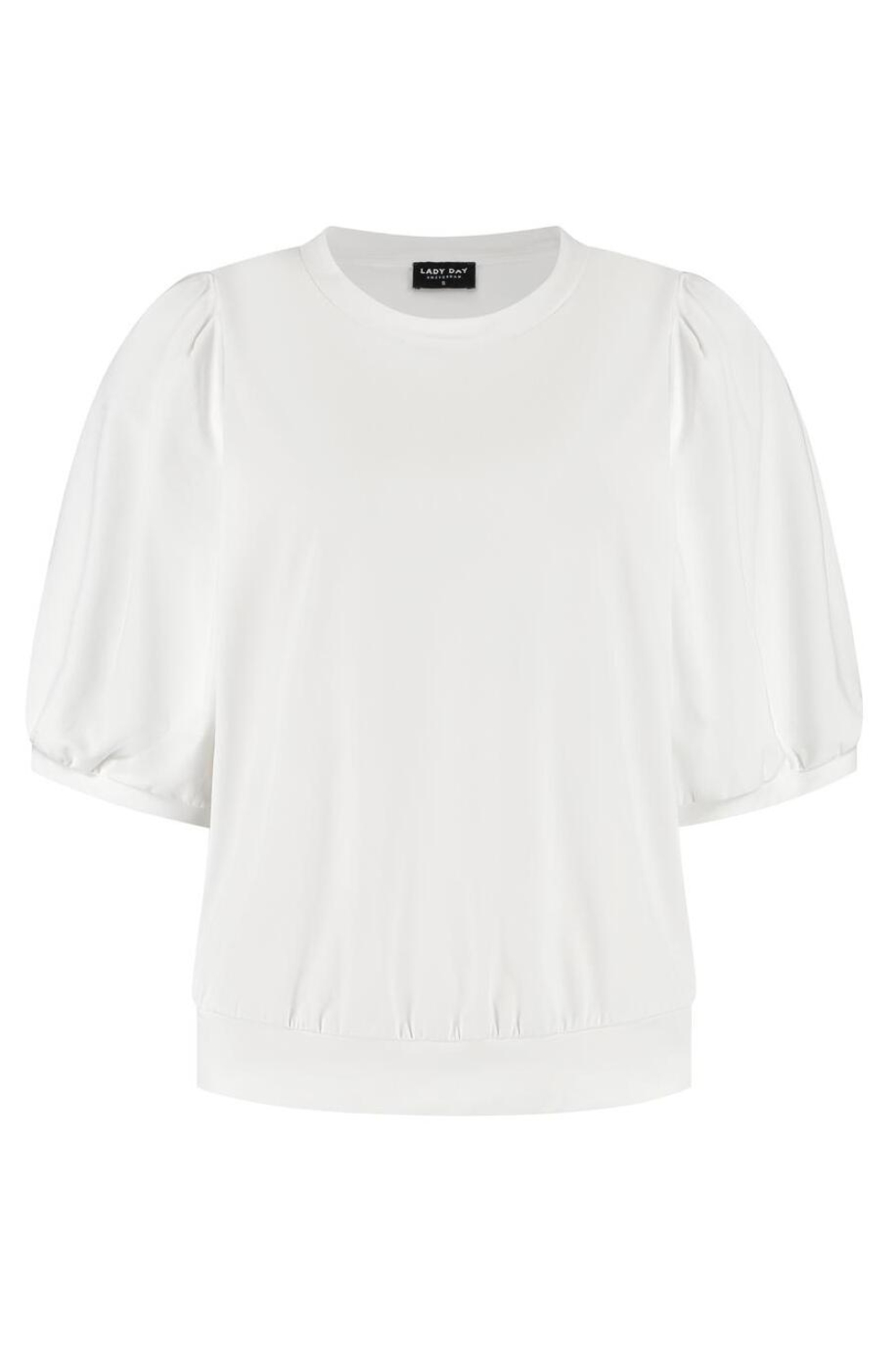 Dit elegante T-shirt van Lady Day brengt comfort en stijl moeiteloos samen. Gemaakt van 80% polyamide en 20% elastan, biedt dit T-shirt een zachte en comfortabele pasvorm die perfect is voor zomerse dagen. De ronde hals en het regular fit design zorgen voor een casual look zonder in te boeten op stijl. De 3/4 mouwen met subtiele plooien geven het T-shirt een verfijnde uitstraling, waardoor het zich onderscheidt van andere zomerstukken in je garderobe. Of je nu een wandeling gaat maken of een relaxte middag met vrienden doorbrengt, dit Lady Day T-shirt is een ideale keuze. De veelzijdige witte kleur maakt het gemakkelijk te combineren met verschillende outfits, van een casual jeans tot een modieuze rok. Met zijn normale lengte biedt het de perfecte balans tussen bescheidenheid en moderniteit, waardoor het geschikt is voor diverse gelegenheden. Dit duurzame kledingstuk is een praktische en stijlvolle aanvulling op je garderobe.