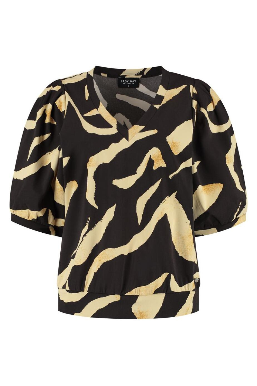 Dit Lady Day T-shirt valt op door zijn grafische print die direct in het oog springt. Met een combinatie van warme gele tinten op een zwarte basis, biedt het shirt een levendige maar toch subtiele uitstraling. De V-hals en korte mouwen zorgen voor een casual en luchtige pasvorm, ideaal voor zomerse dagen. Gemaakt van 80% polyamide en 20% elastan, is dit T-shirt niet alleen stijlvol maar ook comfortabel en rekbaar, wat zorgt voor een prettige pasvorm. Het is perfect te combineren met zowel casual jeans als een meer formele rok, voor een wandeltocht door de stad of een ontspannen dag in het park. Dankzij het duurzame materiaal kies je met dit Lady Day T-shirt voor een bewuste en stijlvolle aanvulling op je garderobe.